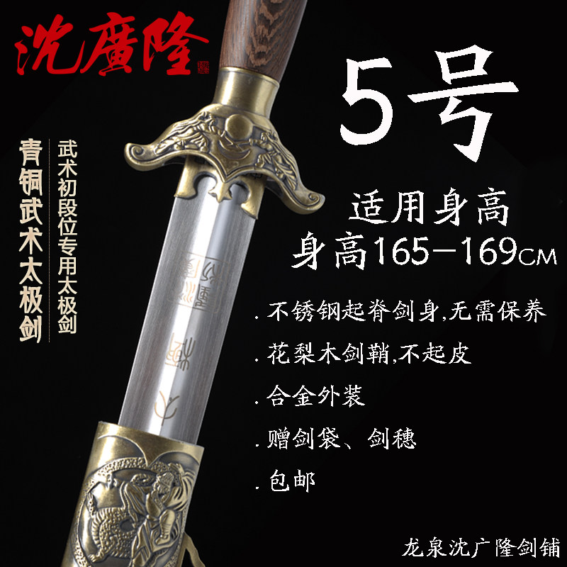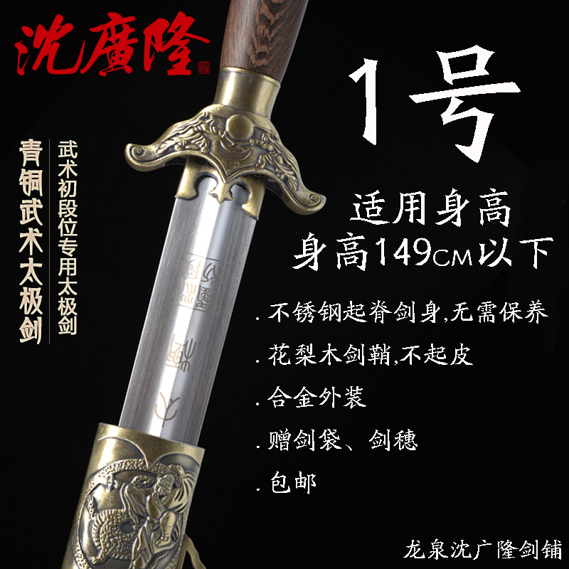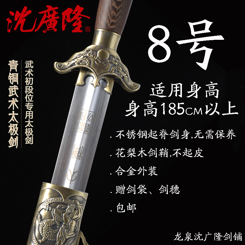 青铜武术太极剑 不锈钢 中软太极剑 龙泉沈广隆宝剑 未开刃