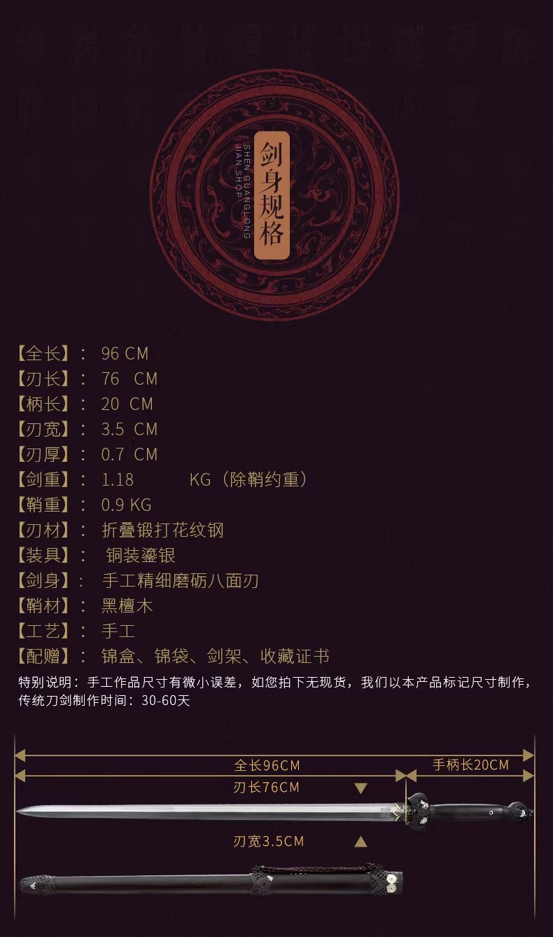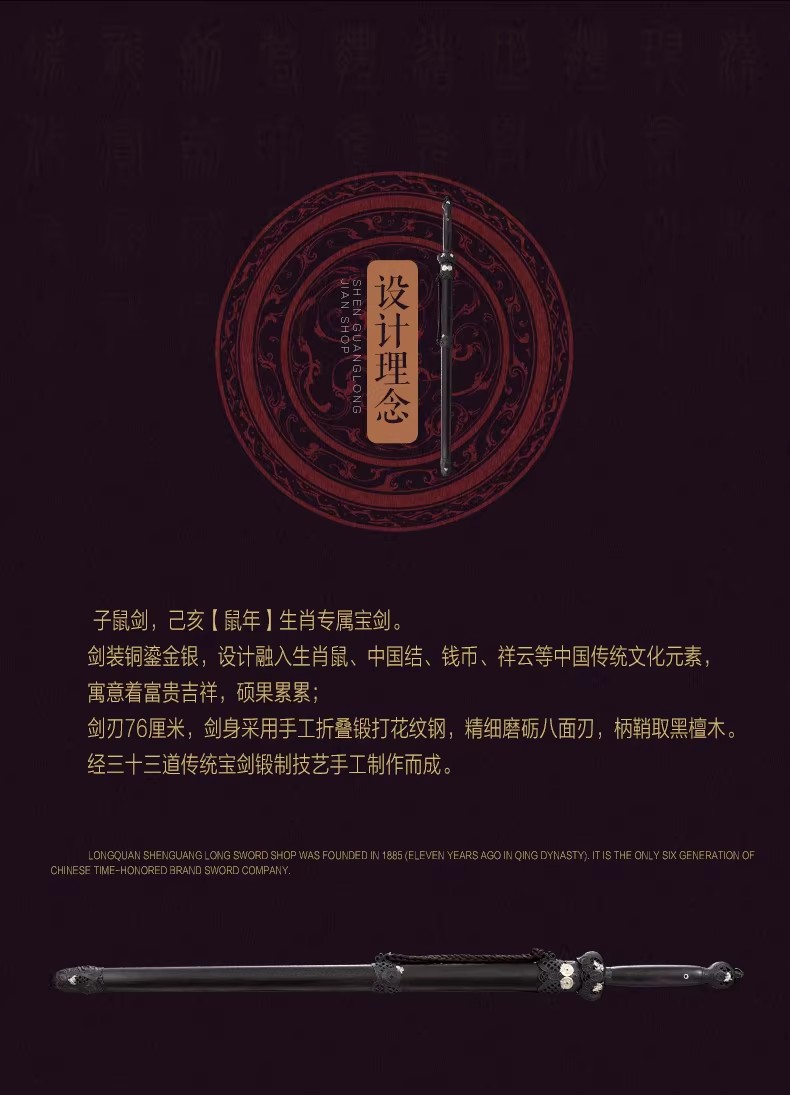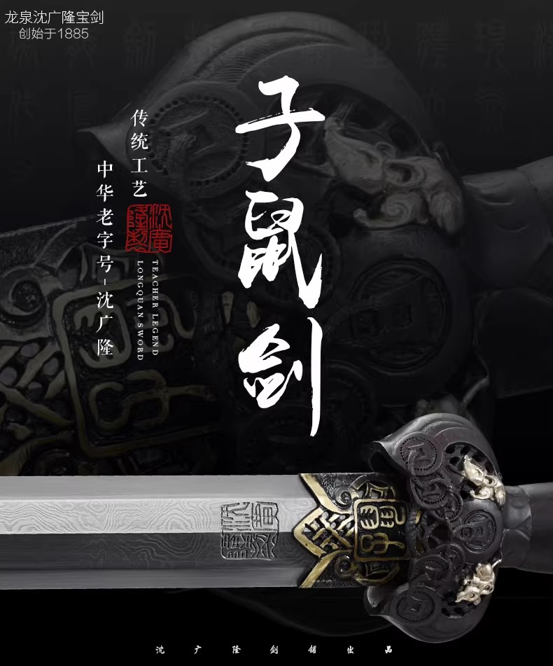 子鼠剑 花纹钢剑 生肖刀剑 传统宝剑 龙泉沈广隆剑 宝剑 未开刃