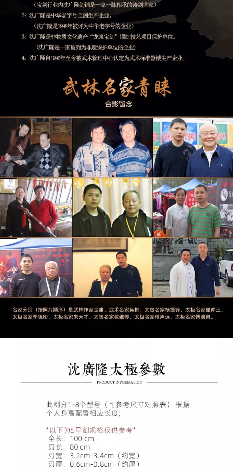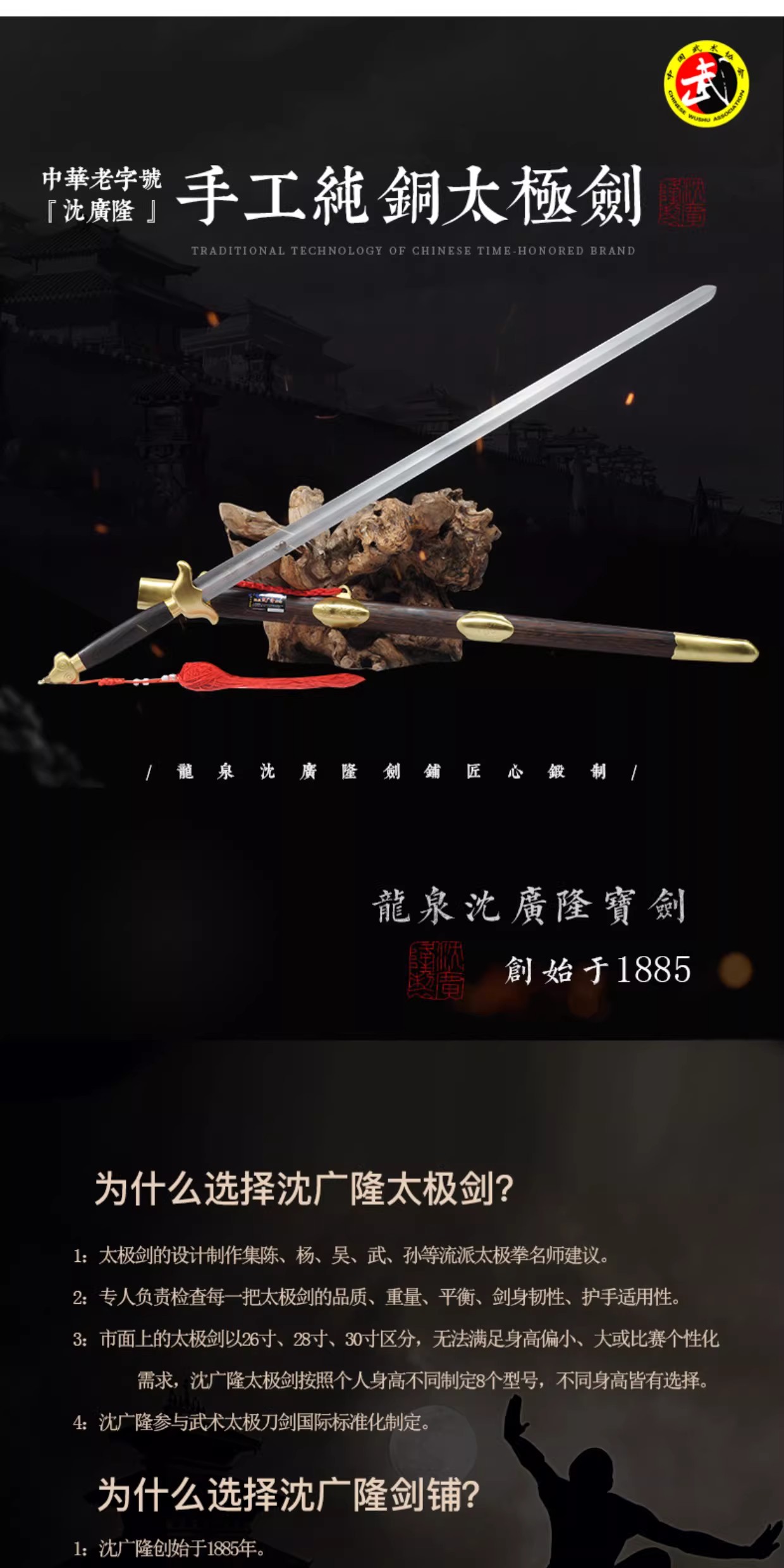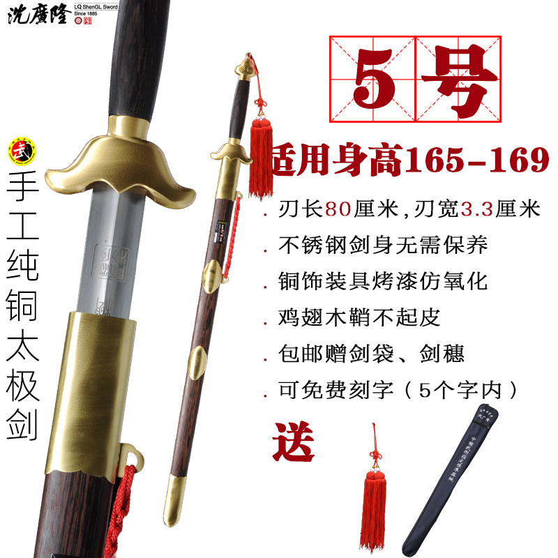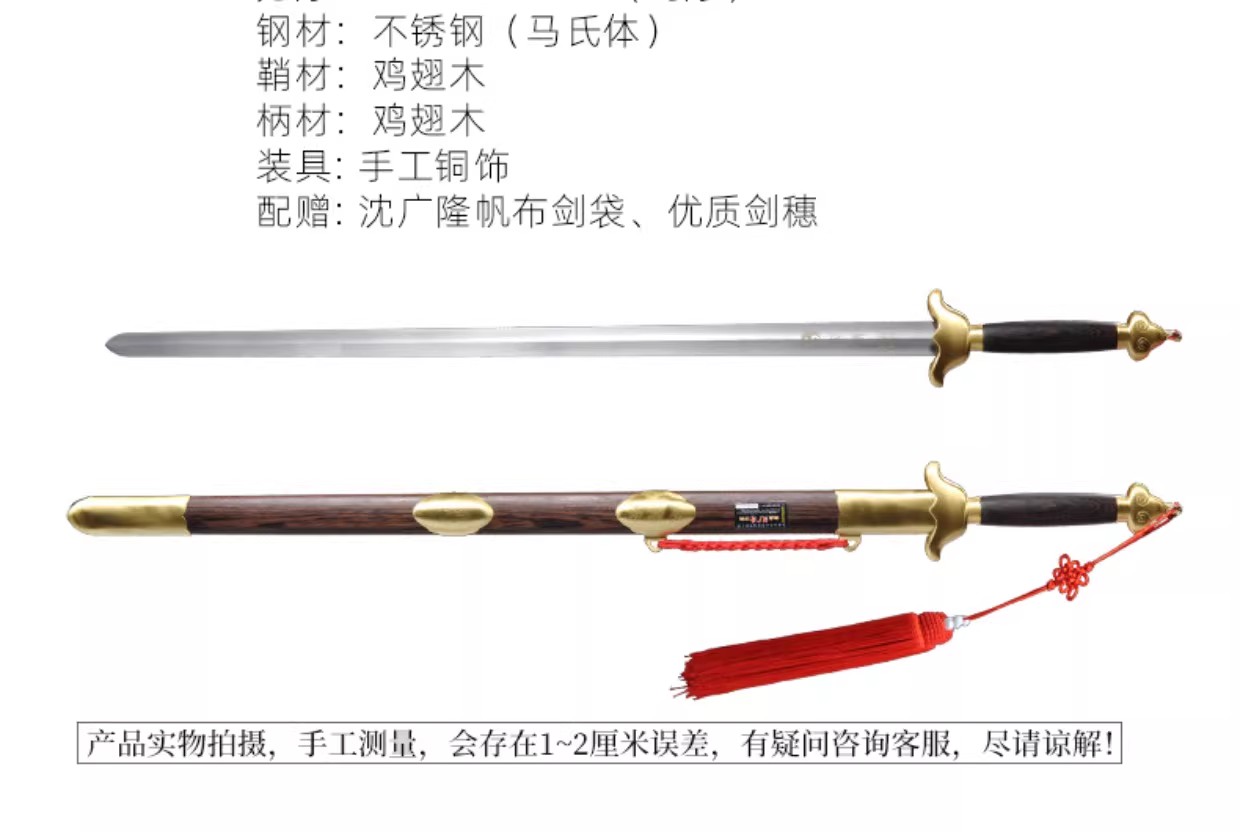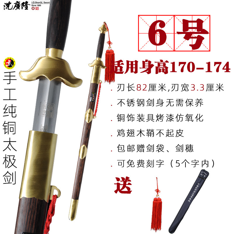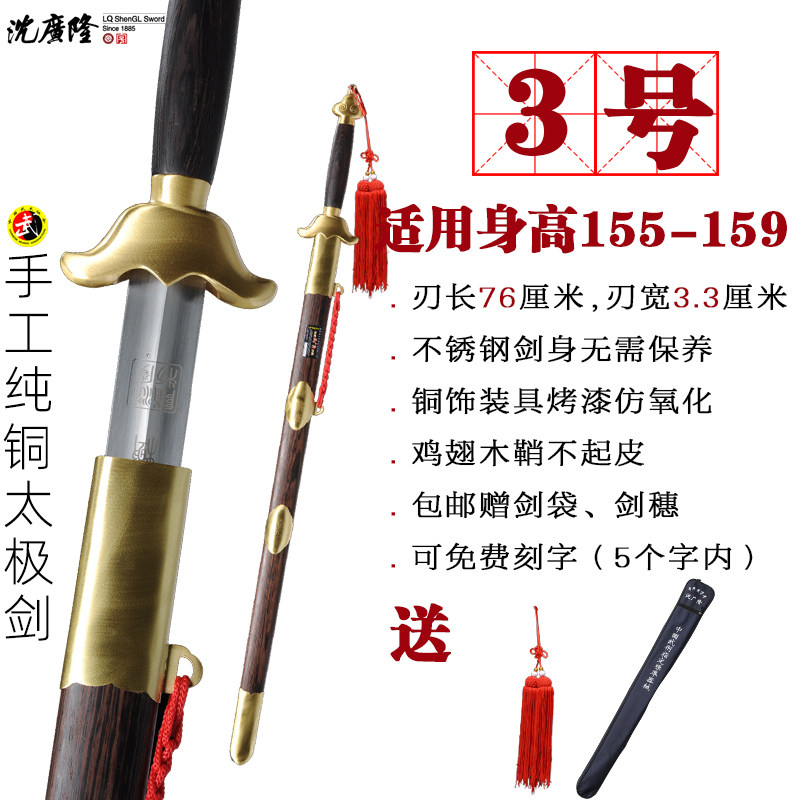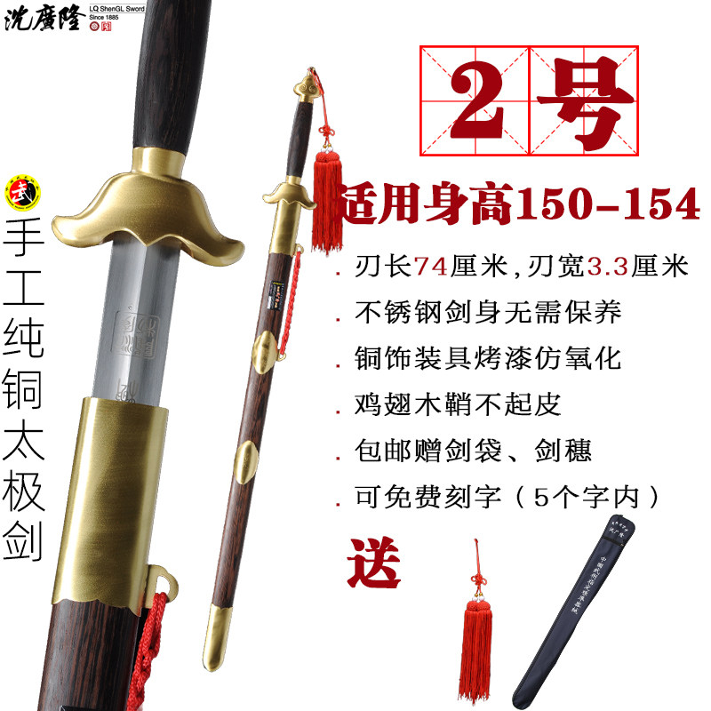 手工纯铜太极剑 不锈钢太极剑 按身高配 龙泉沈广隆宝剑 未开刃