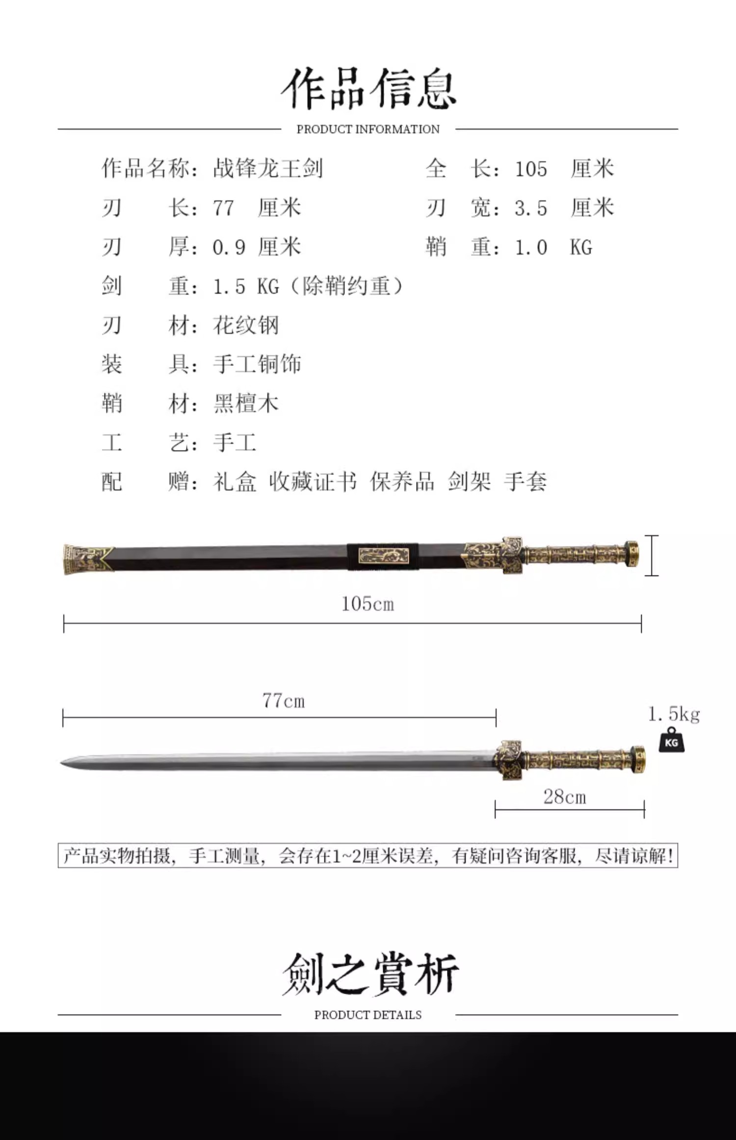 战锋龙王剑 汉唐横剑 冷兵器一体刀剑 龙泉沈广隆 宝剑 未开刃
