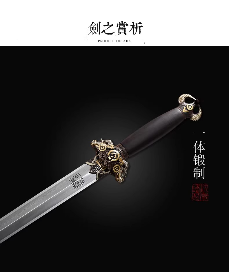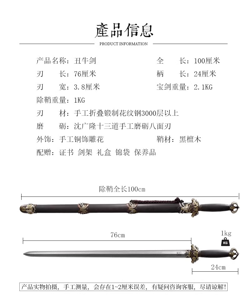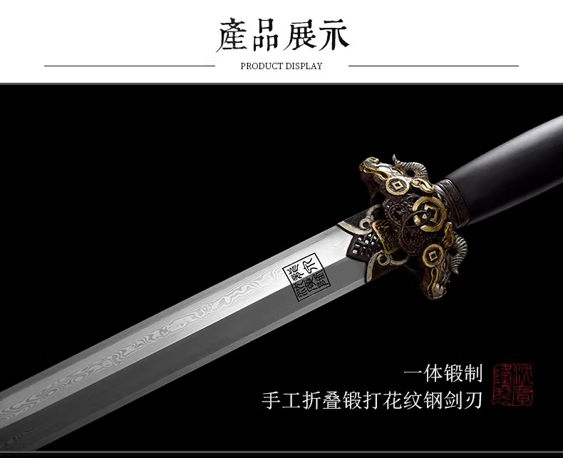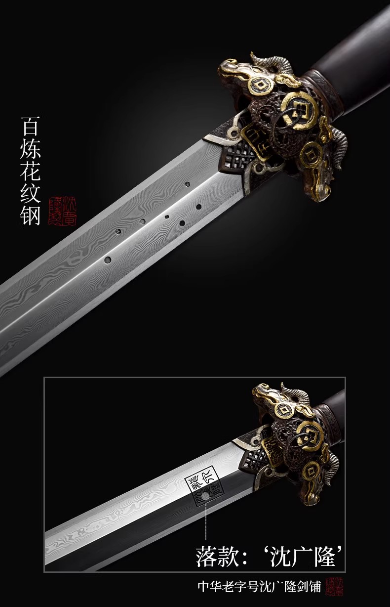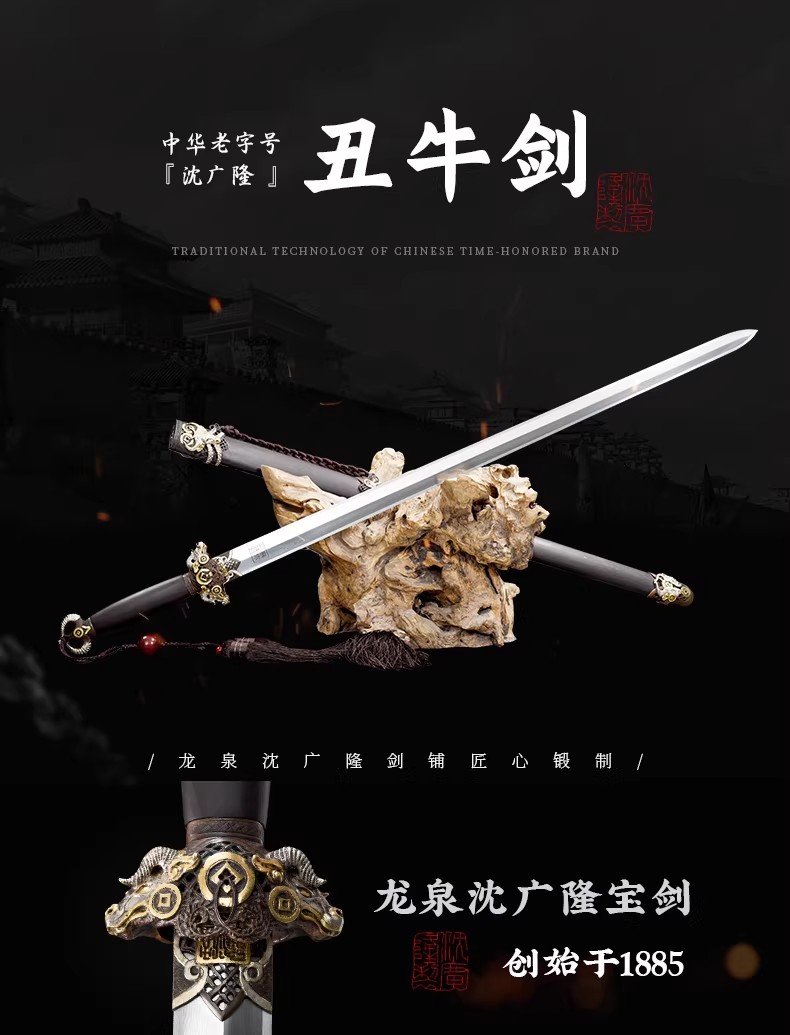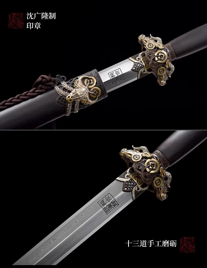 丑牛剑 十二生肖宝剑 硬剑手工花纹钢 龙泉沈广隆传统宝剑 未开刃