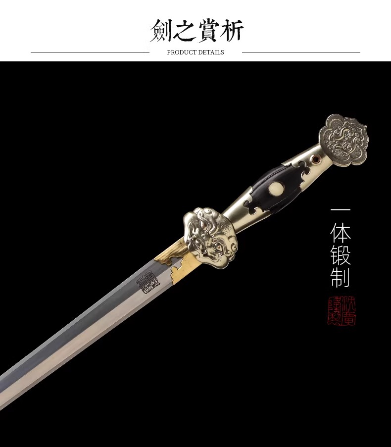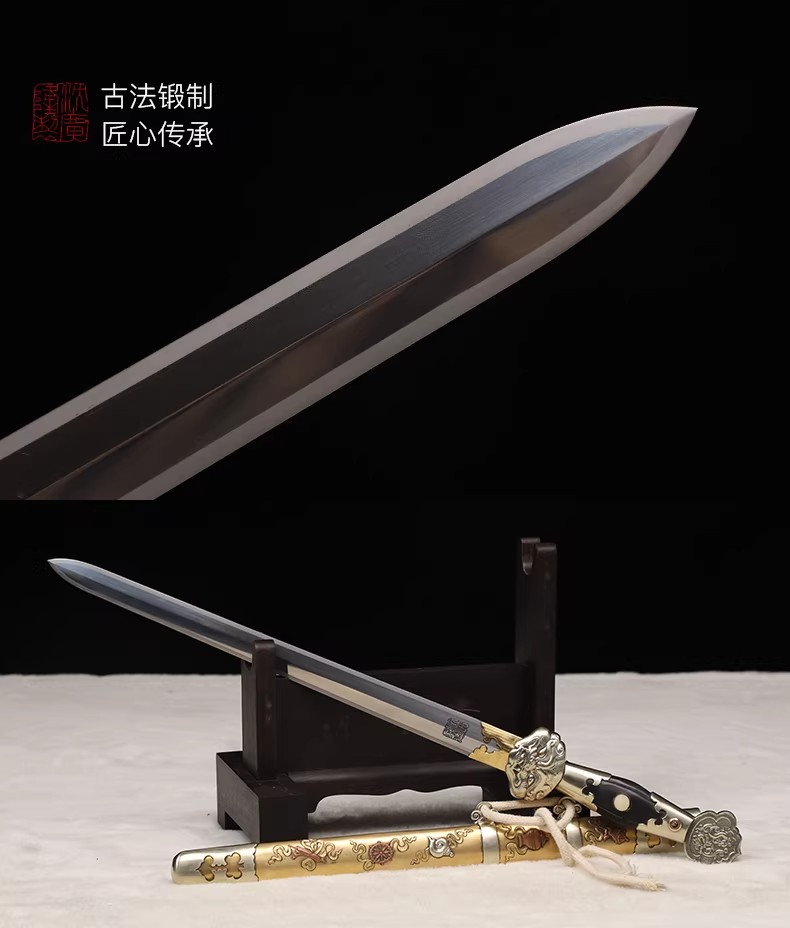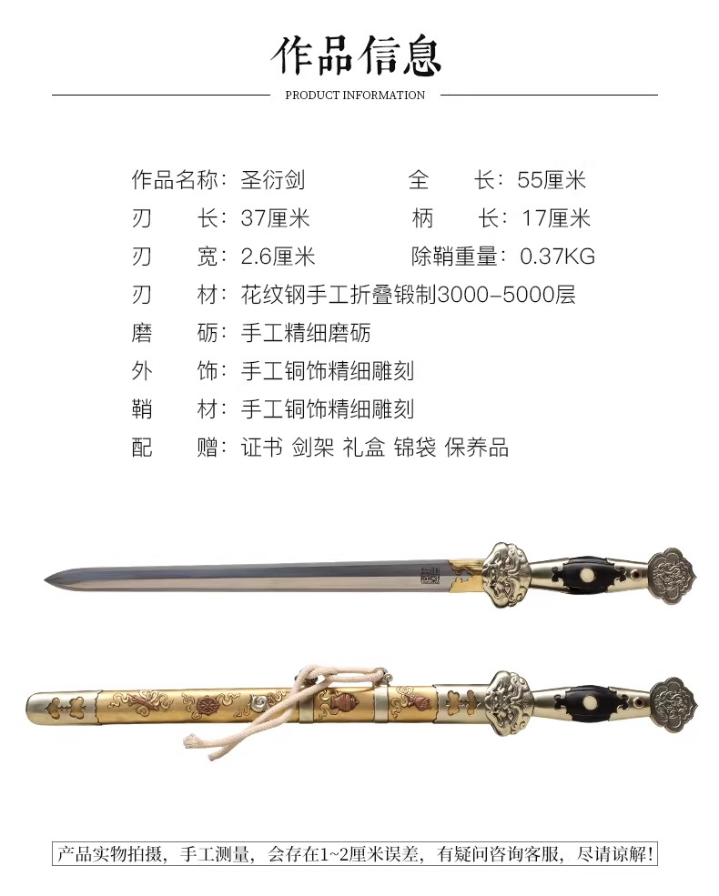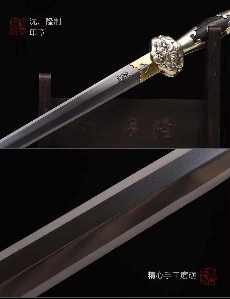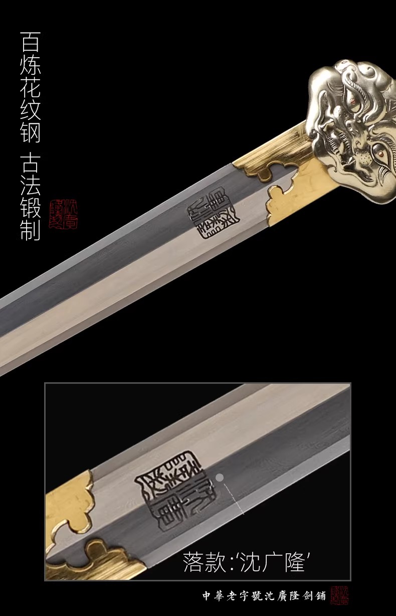 圣衍剑 龙泉沈广隆传统刀剑 沈广隆宝剑 手工刀剑 花纹钢 未开刃