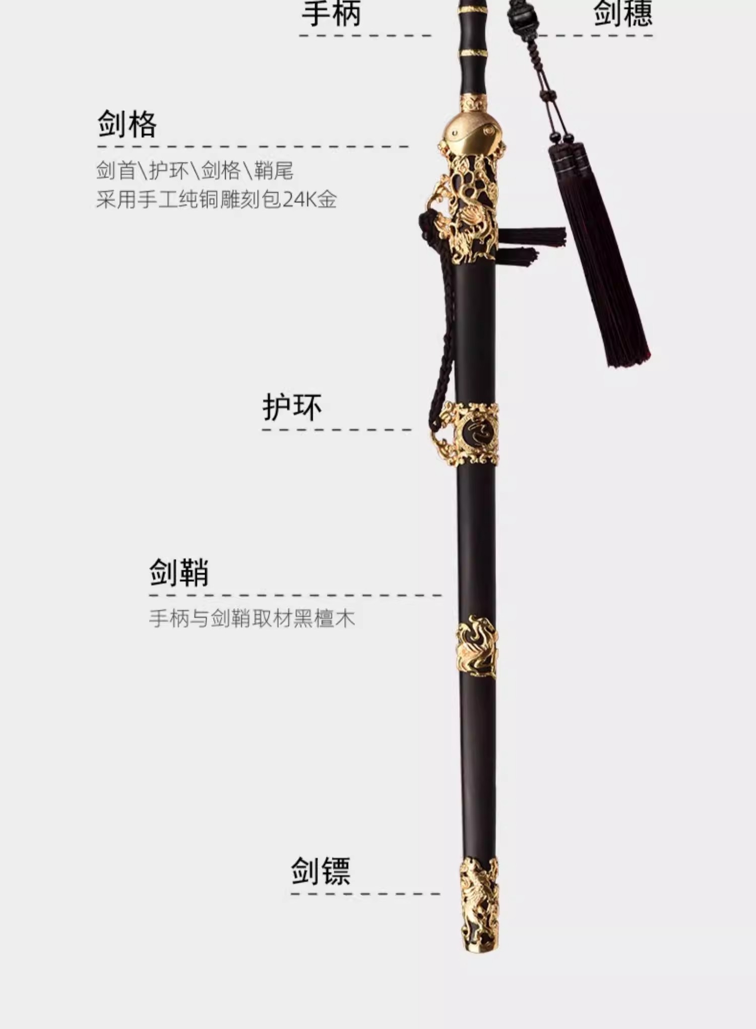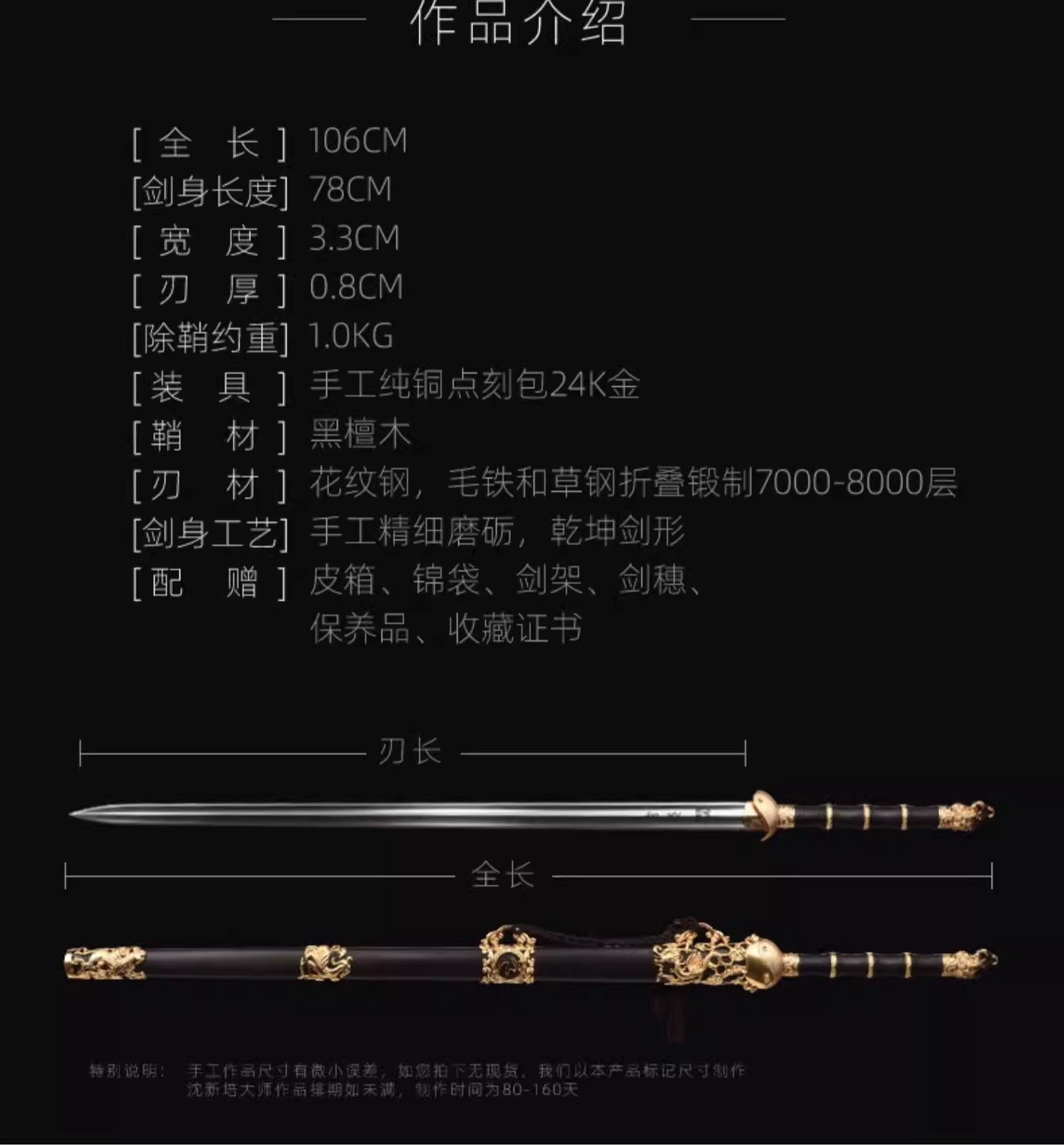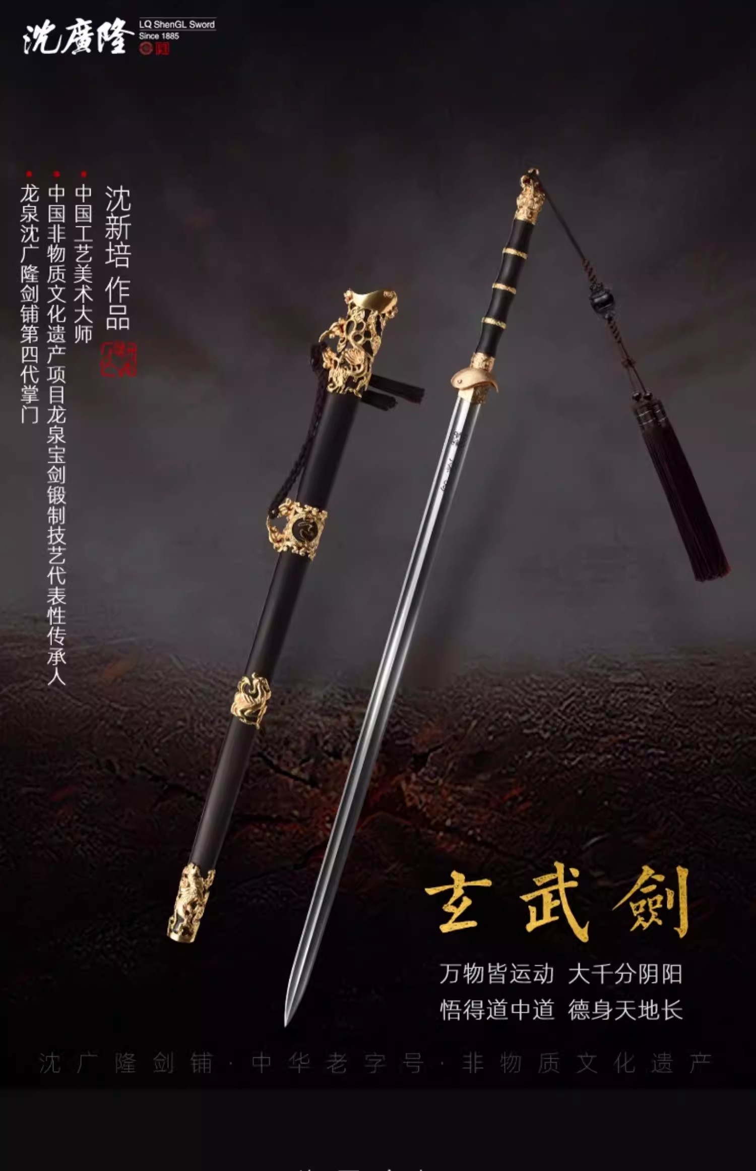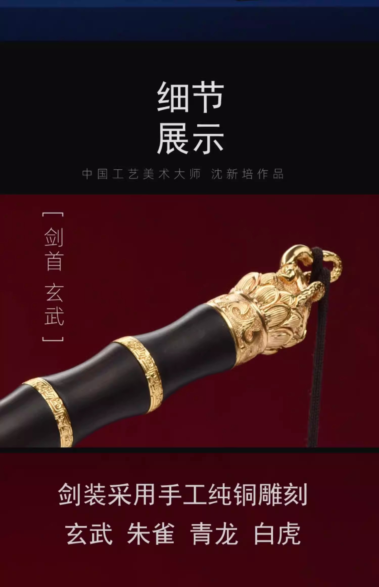 玄武剑 中国工艺美术大师沈新培作品 龙泉沈广隆传统宝剑 未开刃
