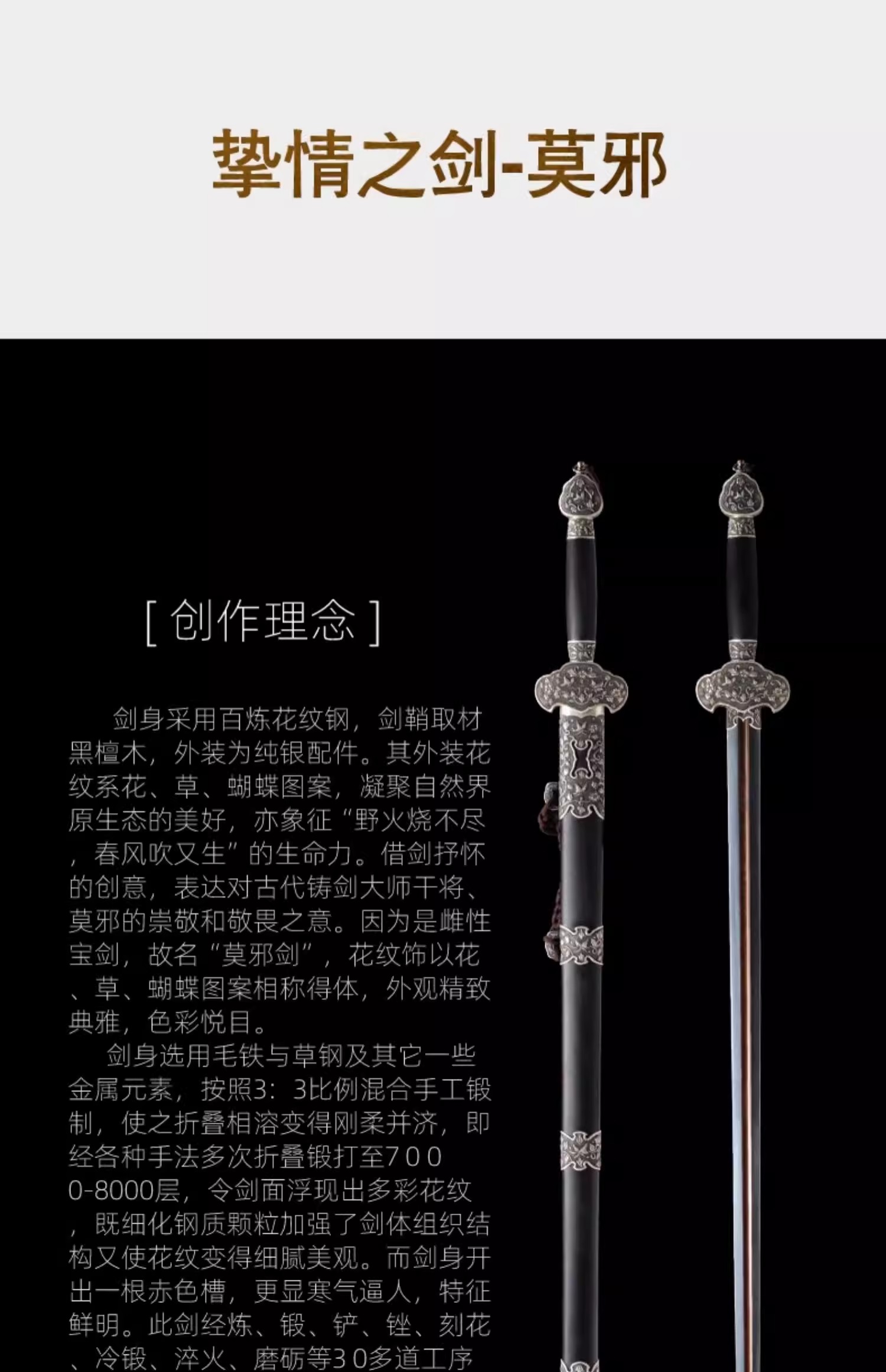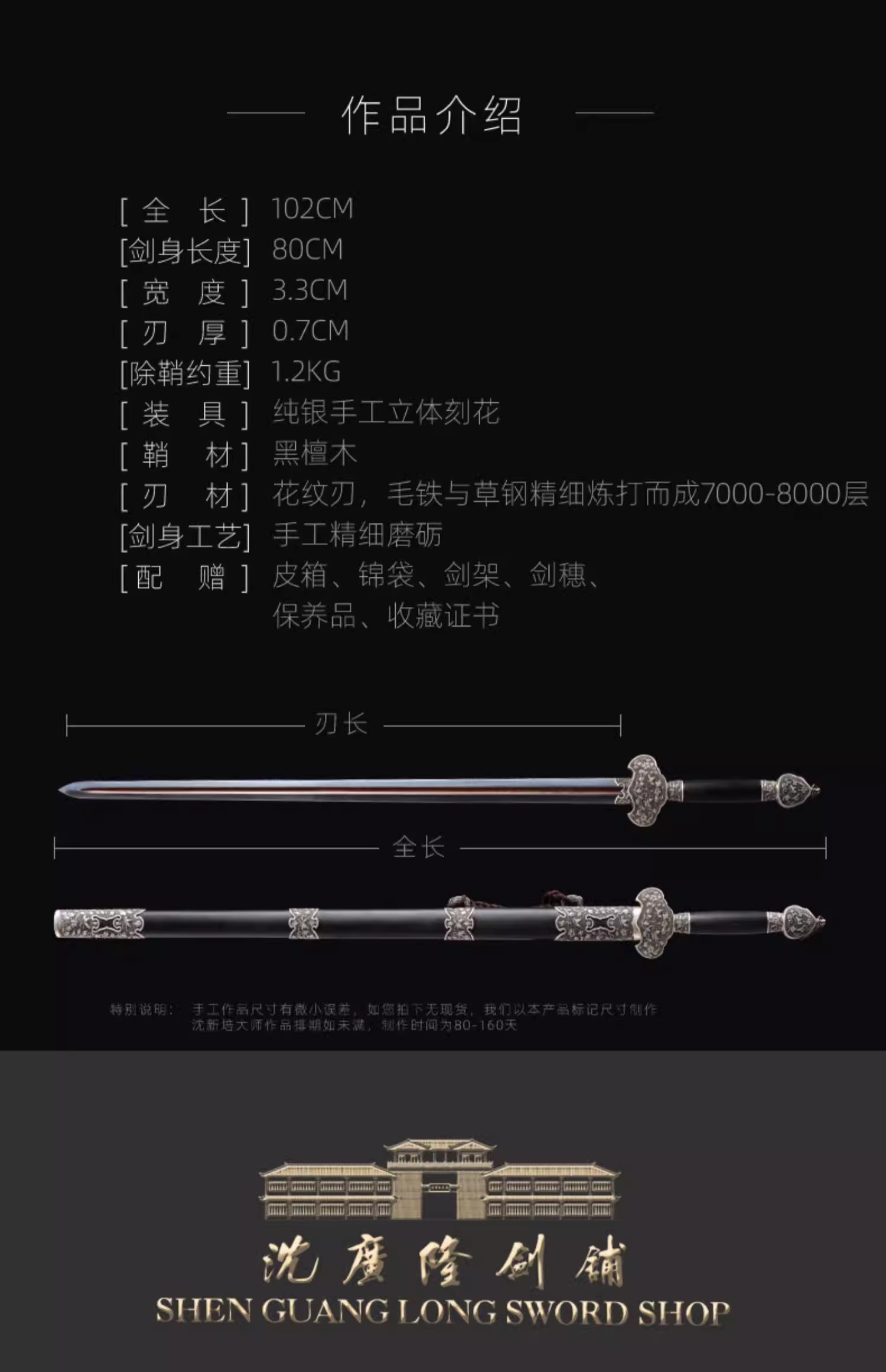 莫邪剑 中国工艺美术大师 沈新培作品 龙泉沈广隆传统宝剑 未开刃