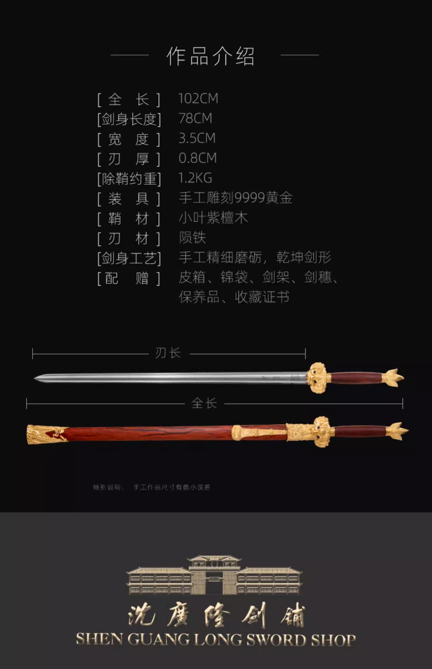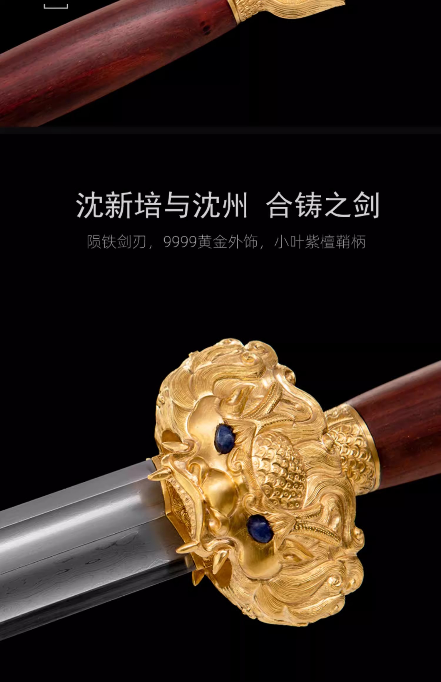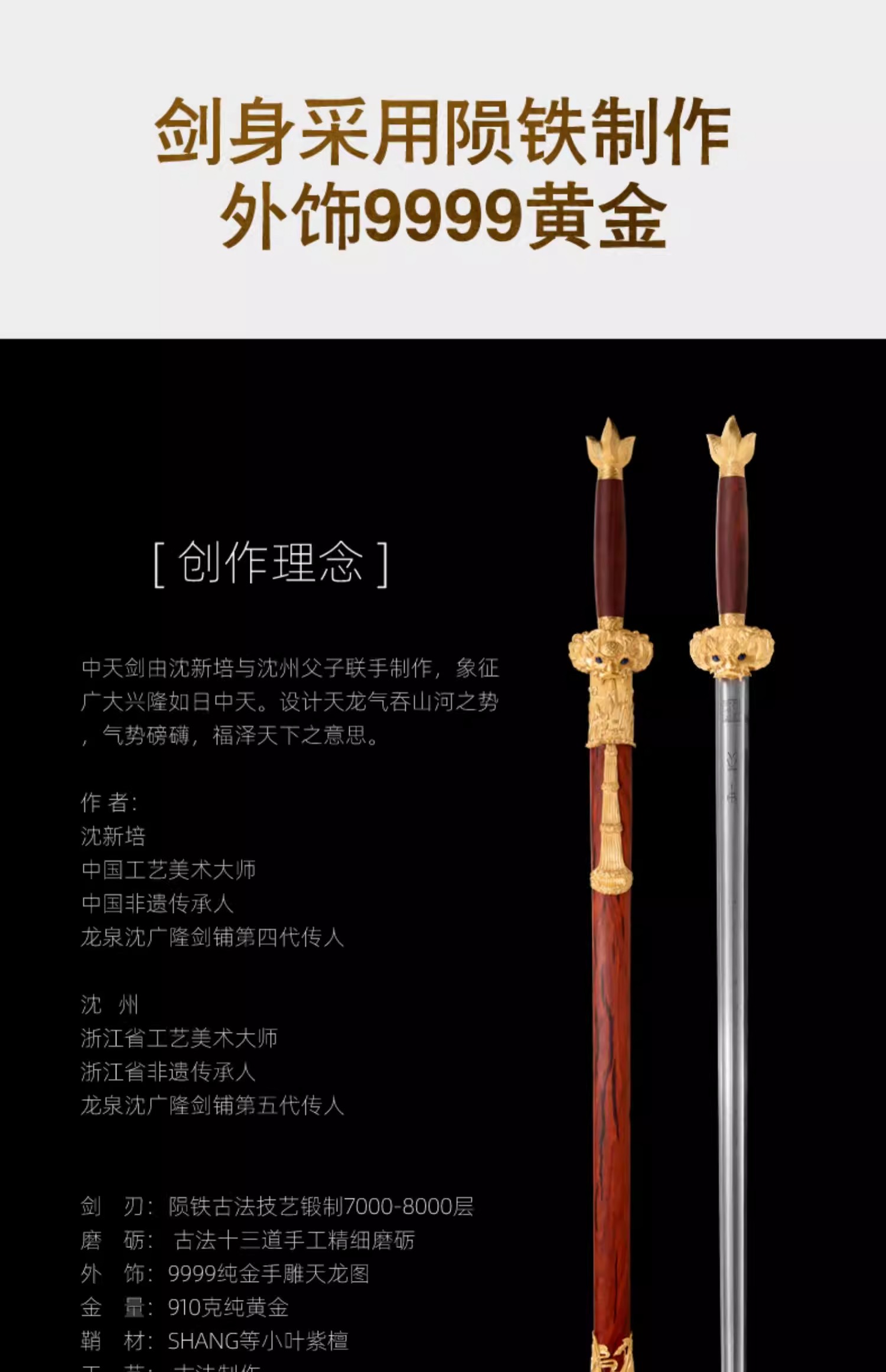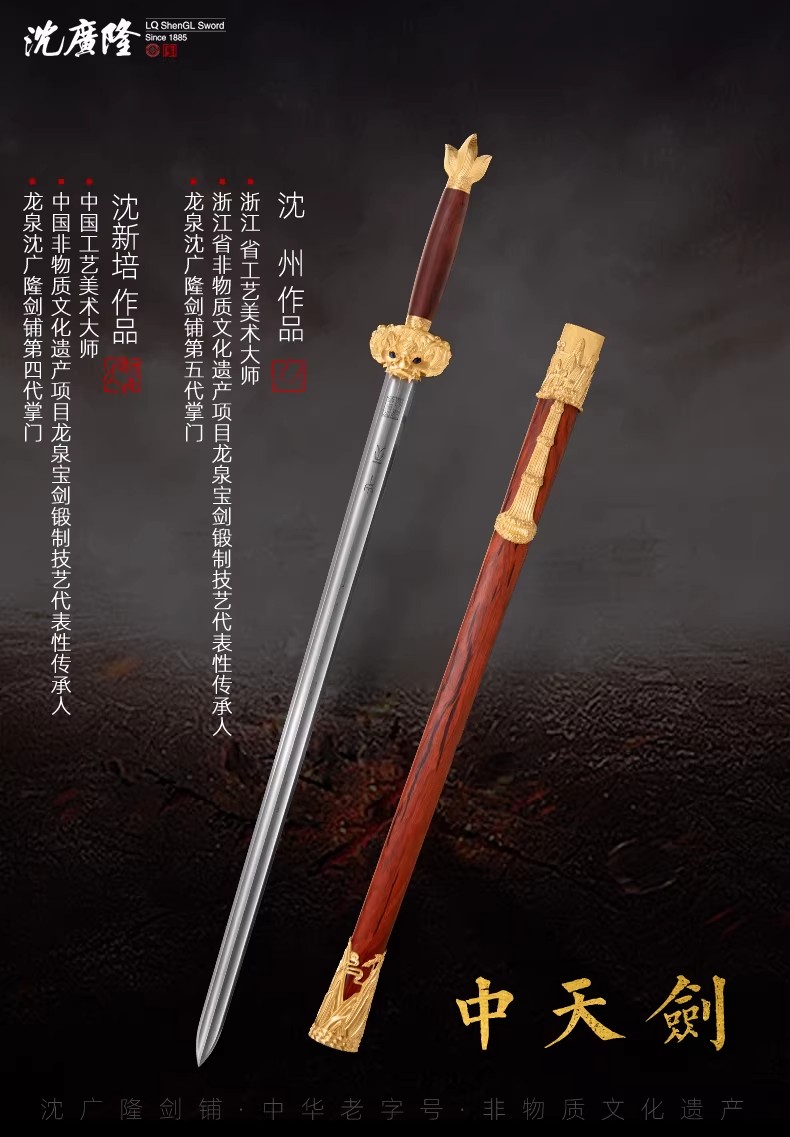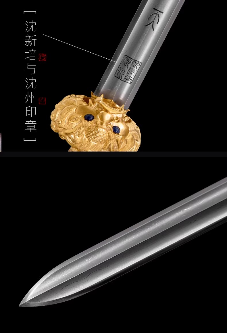 中天剑 沈新培沈州合铸宝剑 龙泉沈广隆陨铁刃黄金外饰剑 未开刃