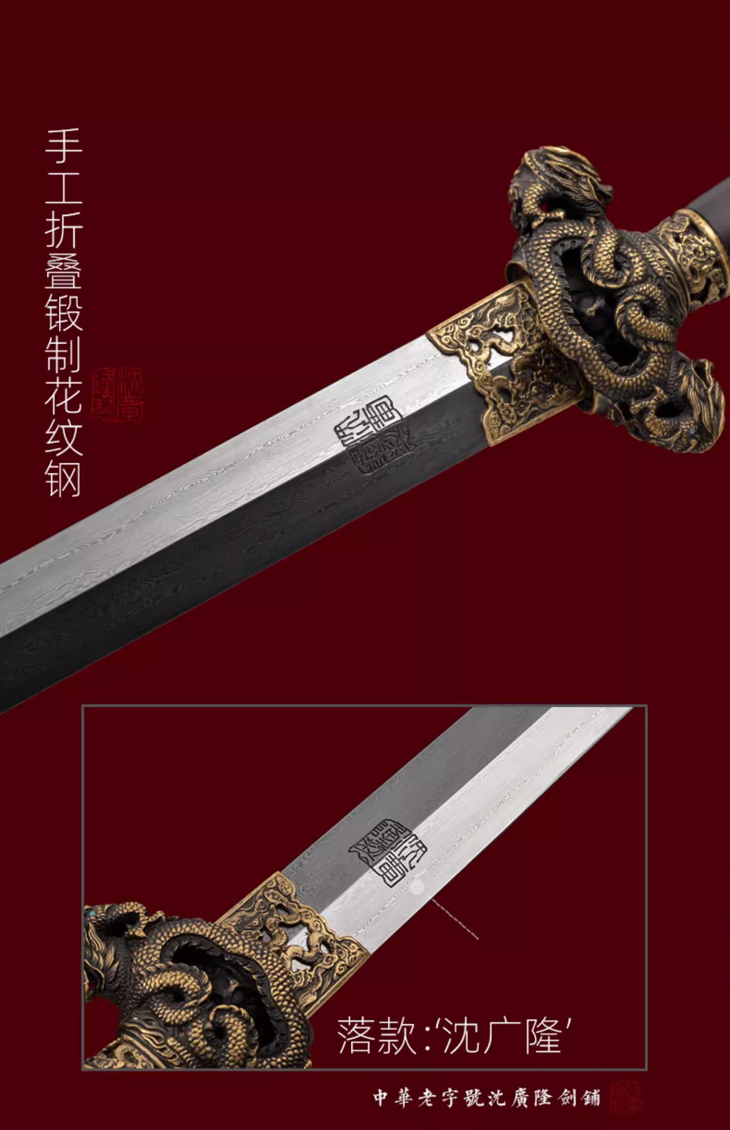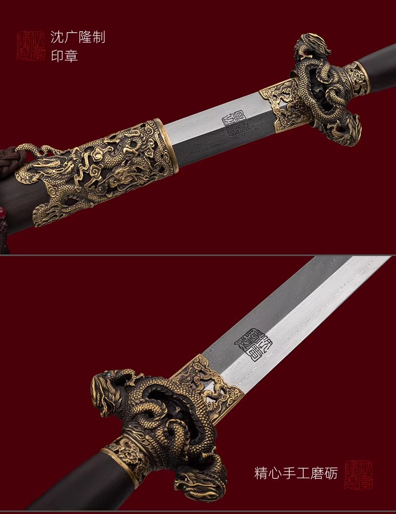 九龙剑 花纹钢宝剑龙泉沈广隆宝剑传统剑手工一体剑礼品剑 未开刃