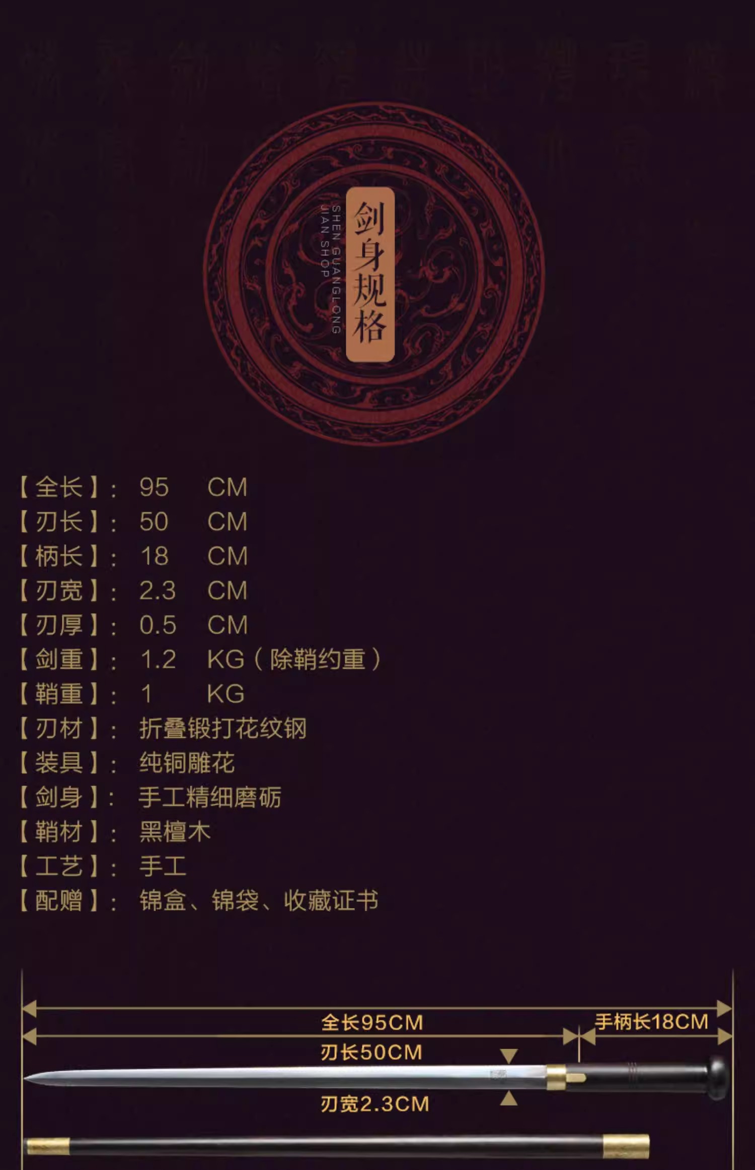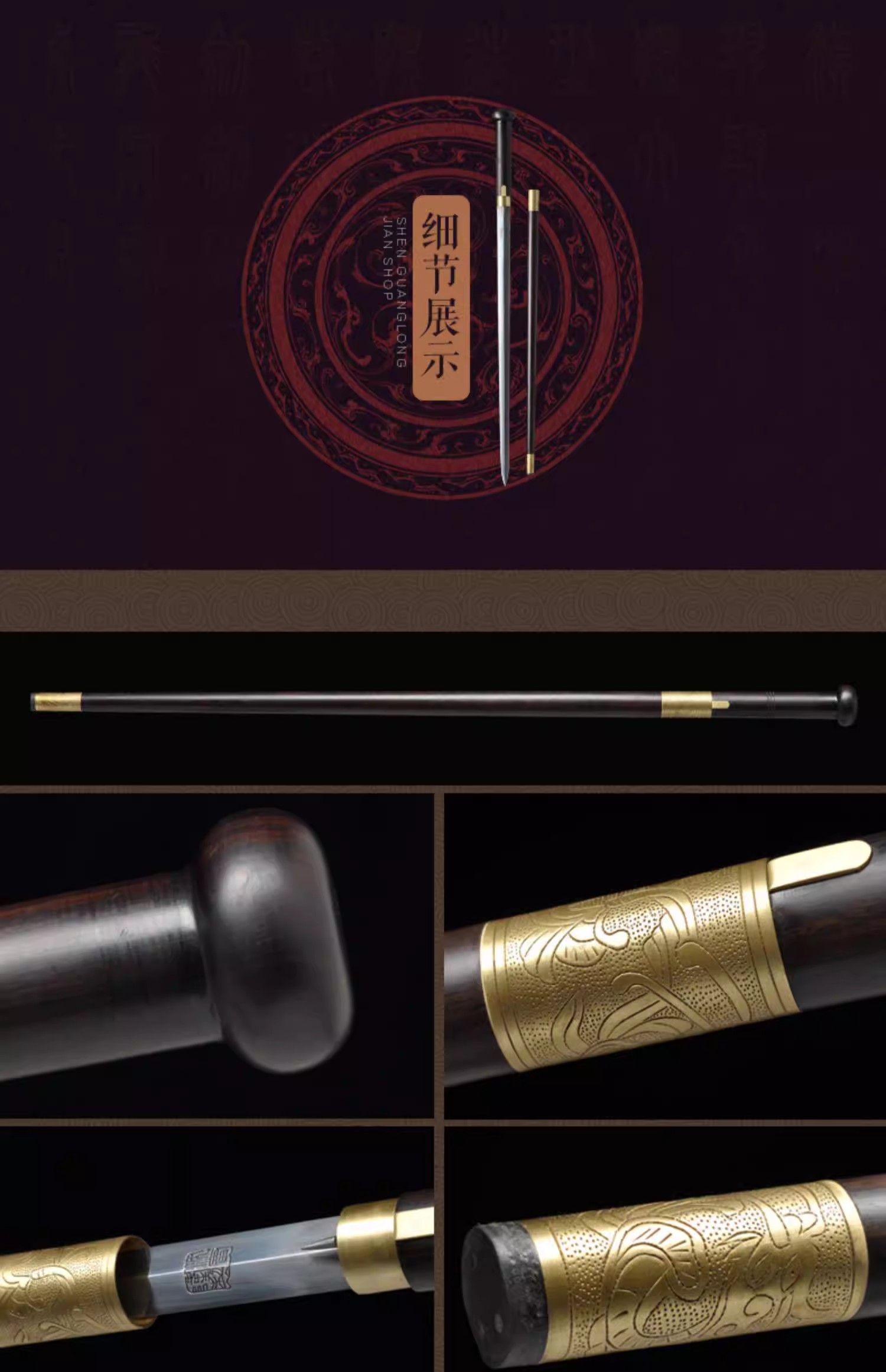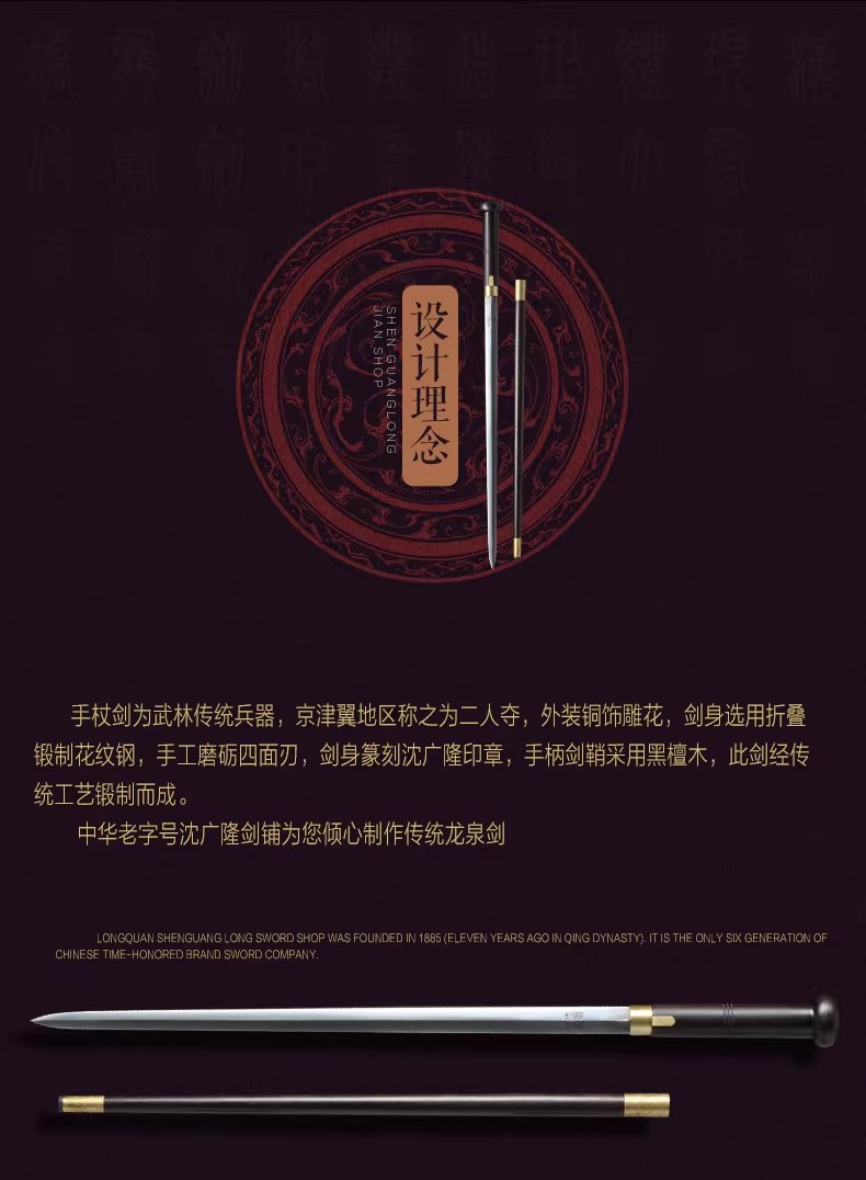 手杖剑 拐杖剑 二人夺 短剑 龙泉沈广隆宝剑 传统收藏剑 未开刃