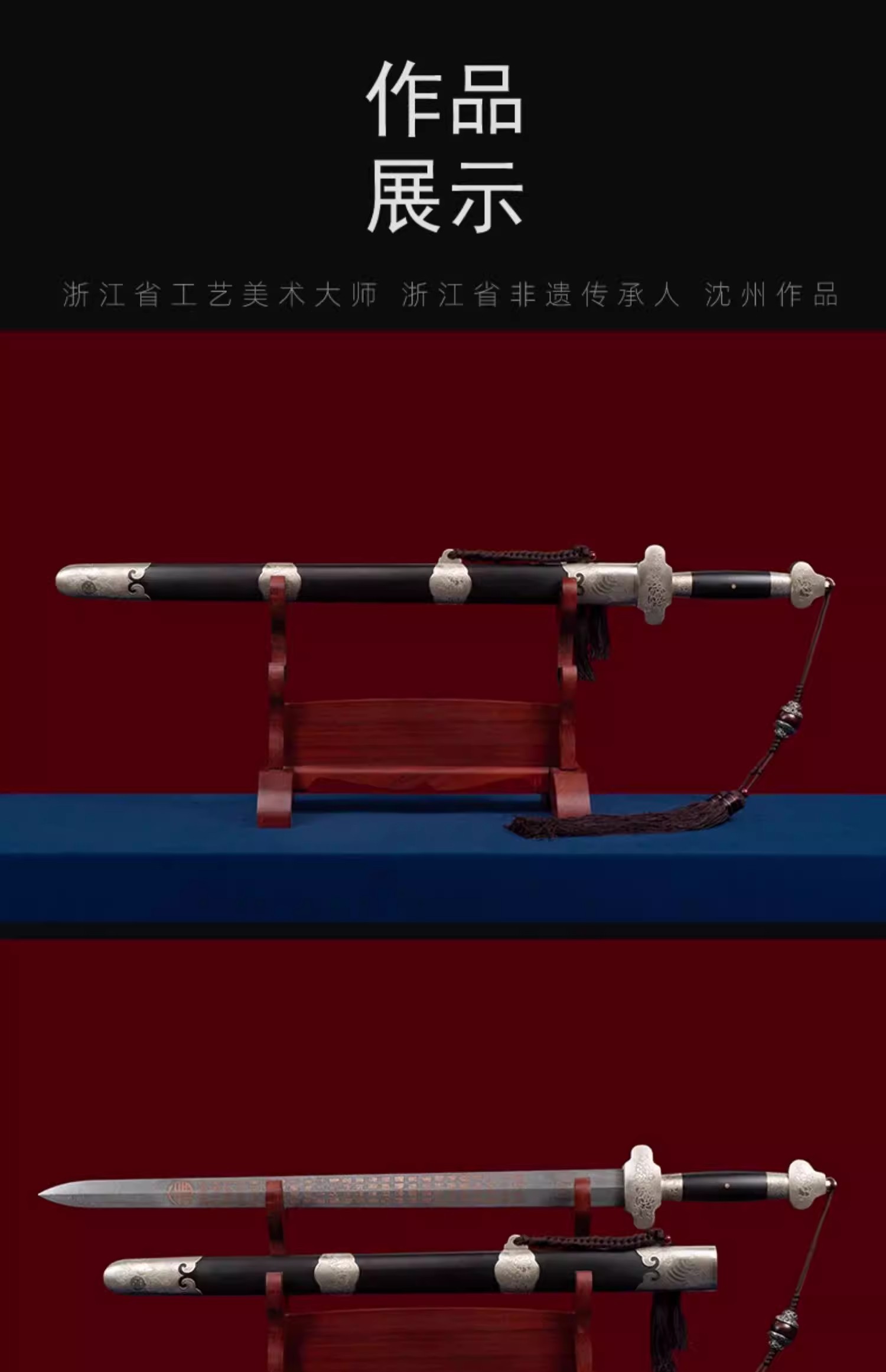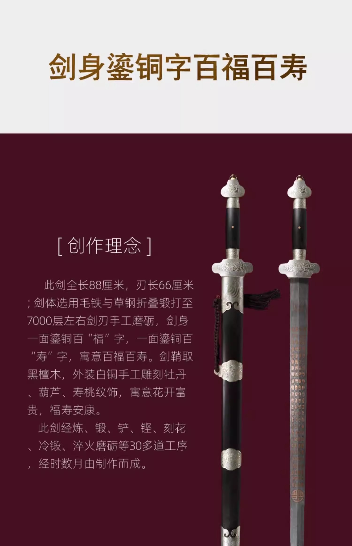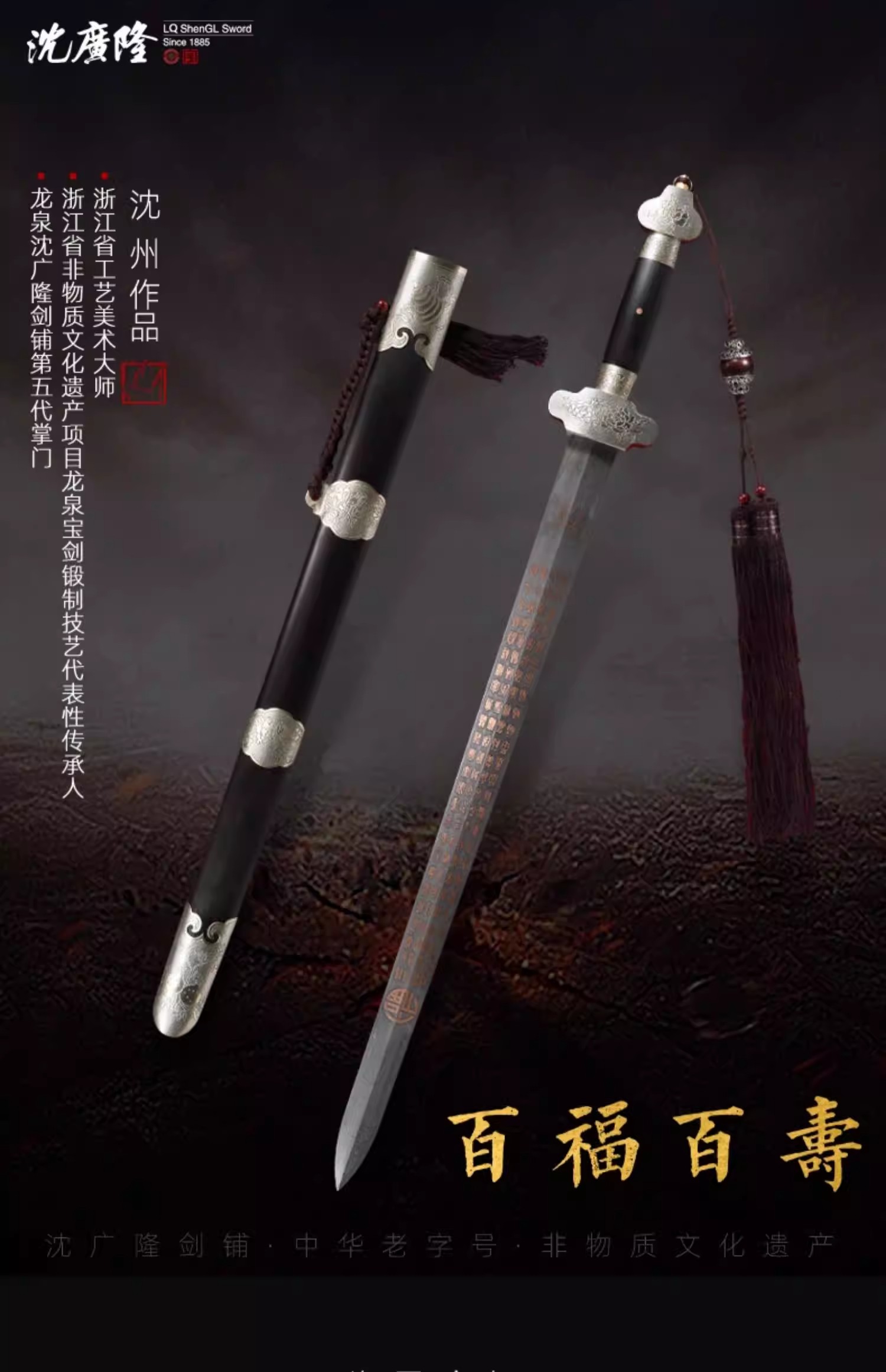 百福百寿剑 沈州作品 龙泉沈广隆宝剑 传统贺寿剑礼品宝剑 未开刃