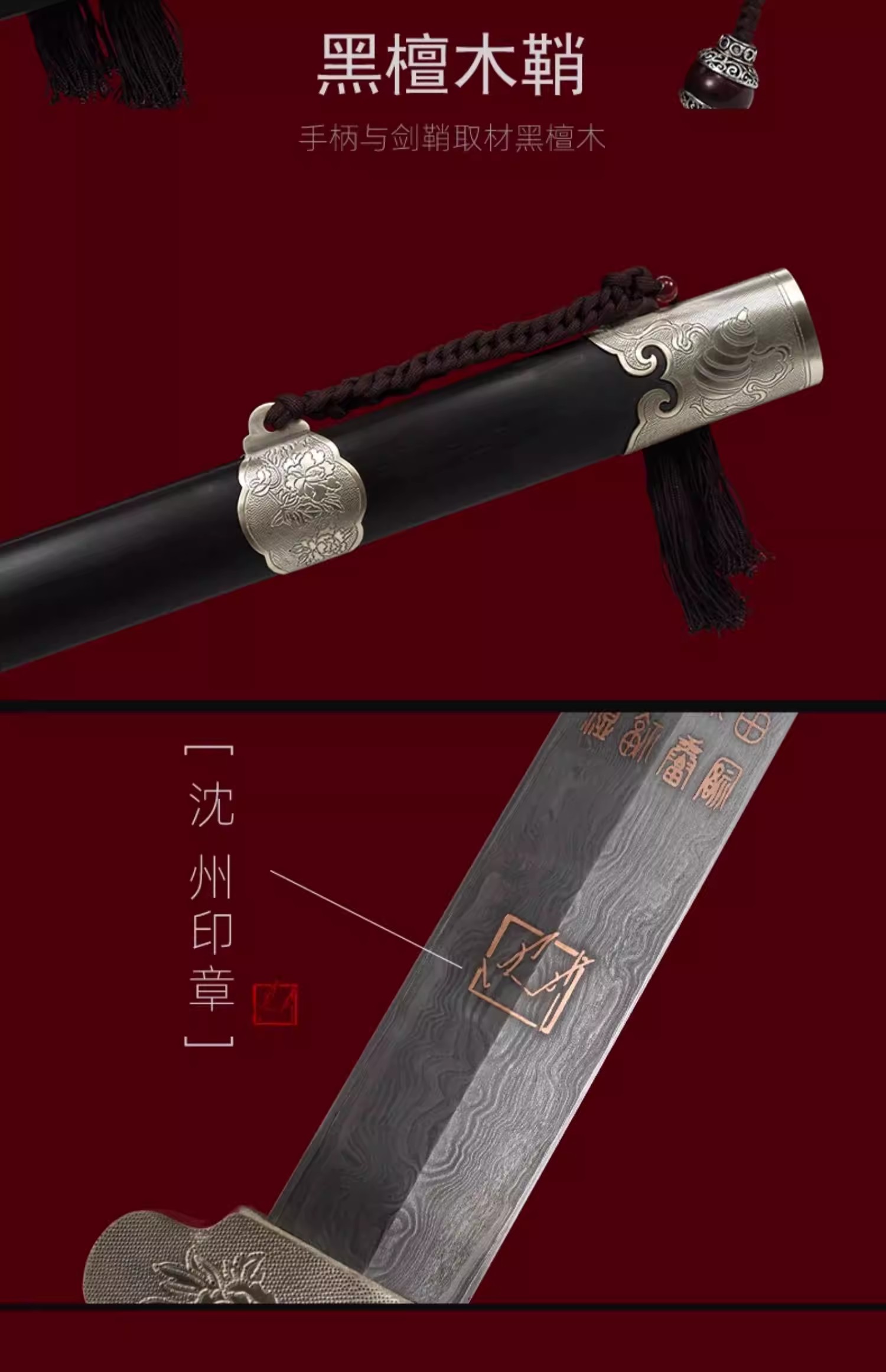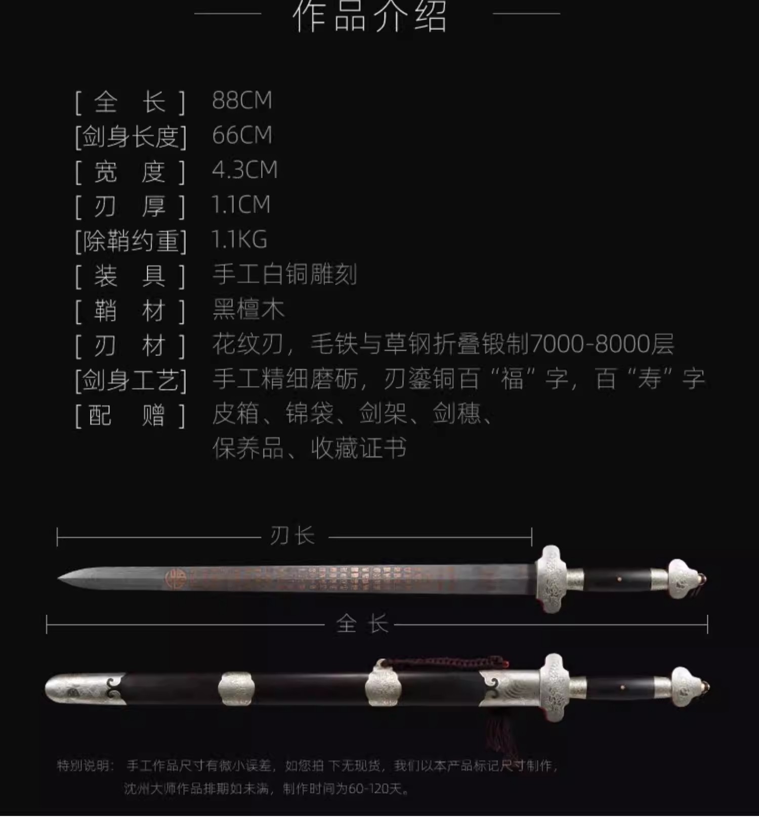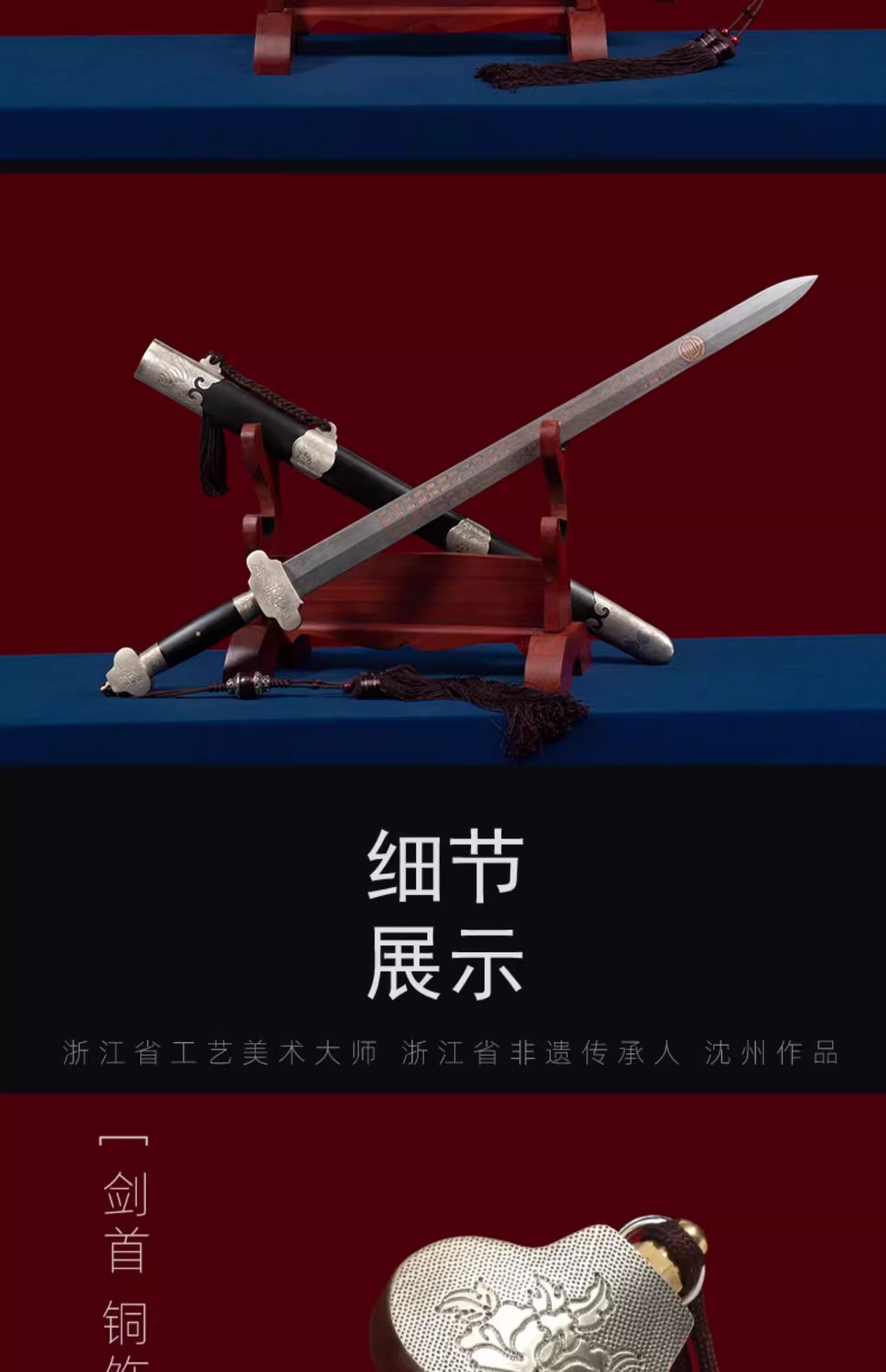 百福百寿剑 沈州作品 龙泉沈广隆宝剑 传统贺寿剑礼品宝剑 未开刃