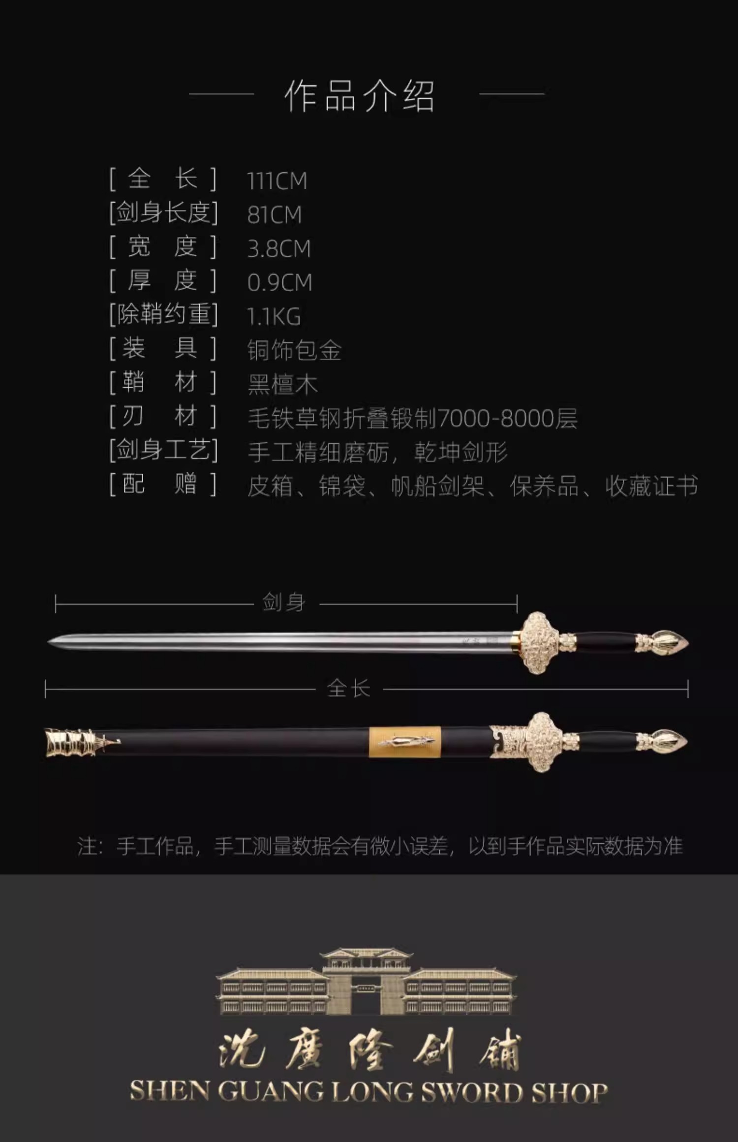成功剑 中国工艺美术大师 沈新培作品 龙泉沈广隆宝剑汉剑 未开刃