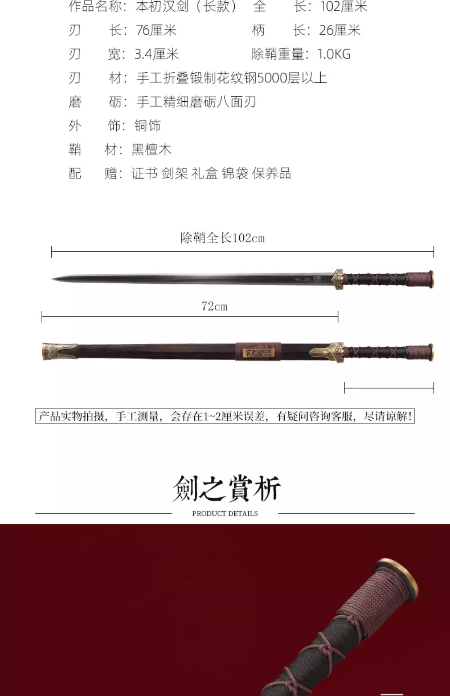 本初汉剑 战国汉剑 龙泉沈广隆大汉剑 唐剑 手工传统宝剑 未开刃