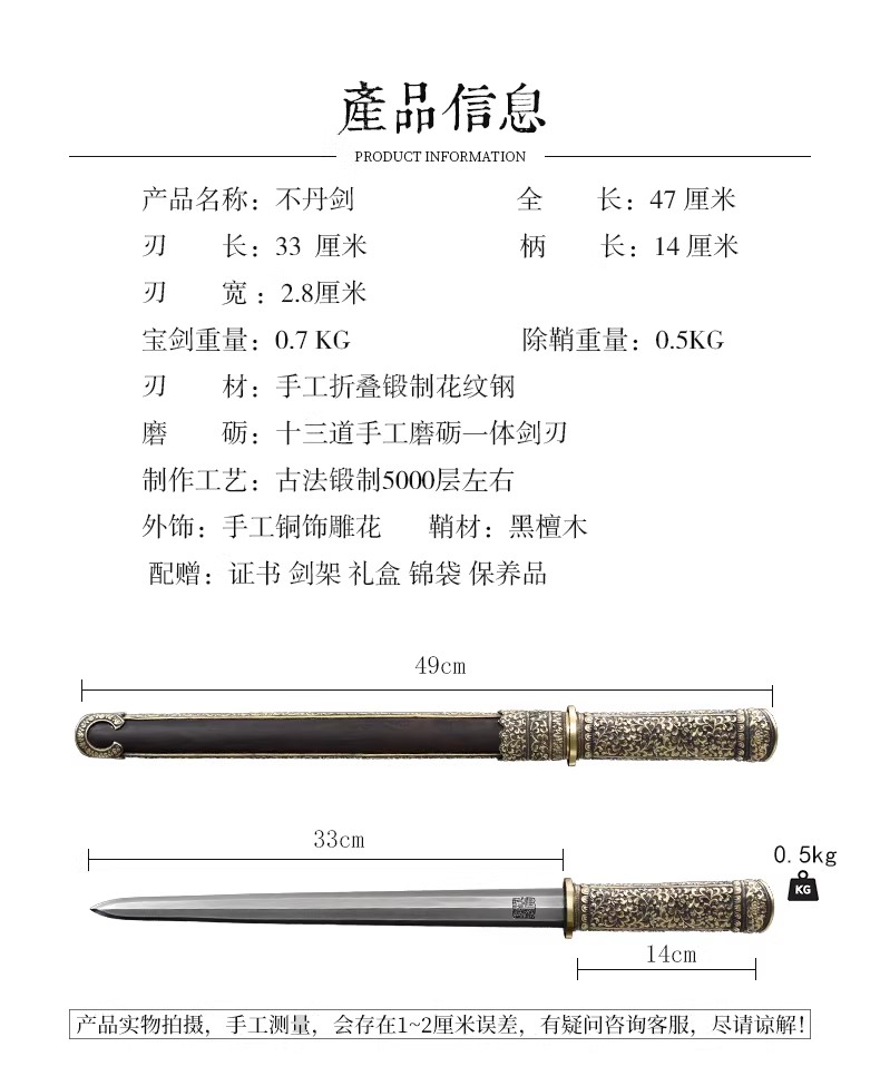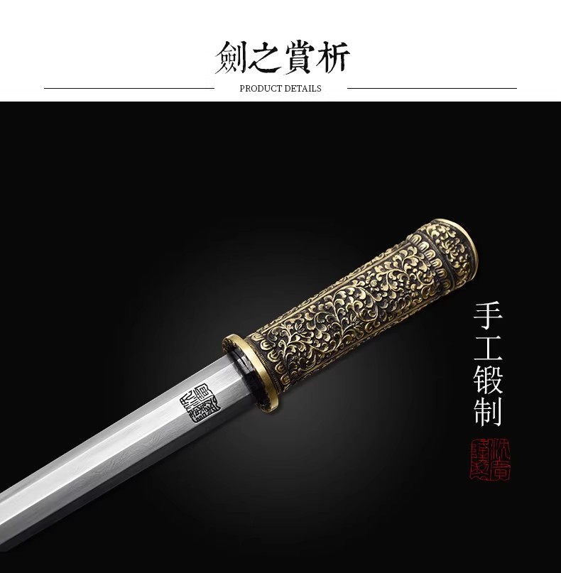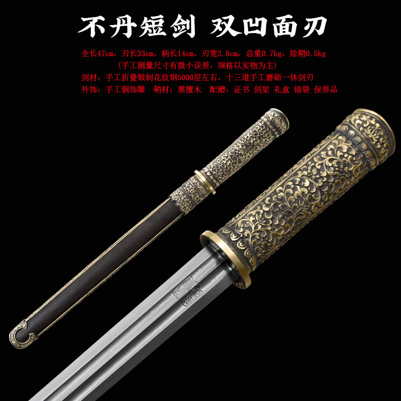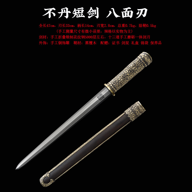不丹剑 汉剑唐剑龙泉短剑刀八面剑 手工花纹钢沈广隆宝剑 未开刃