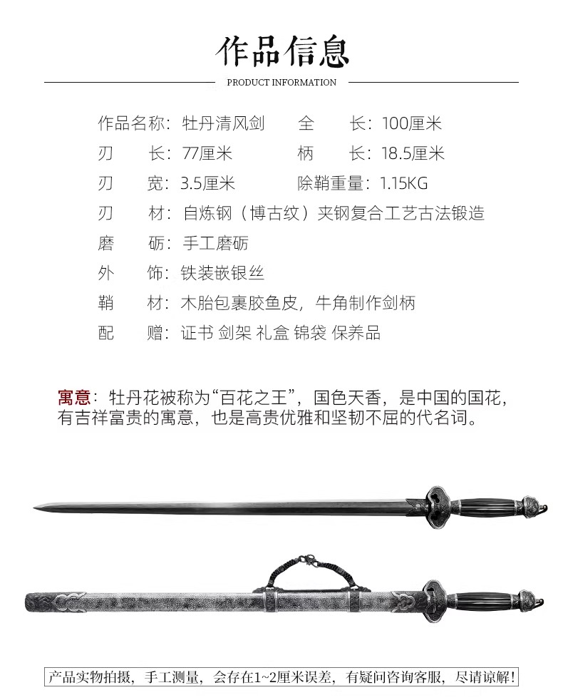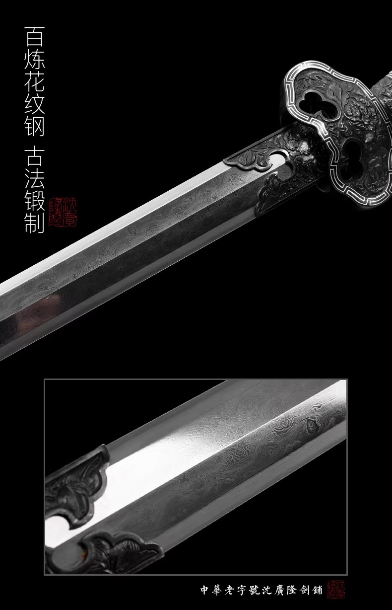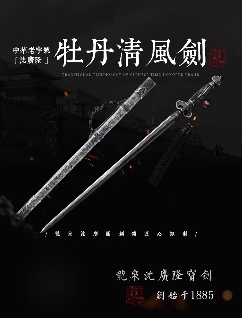 牡丹清风剑 清式宝剑 龙泉沈广隆手工一体宝剑 收藏剑 未开刃
