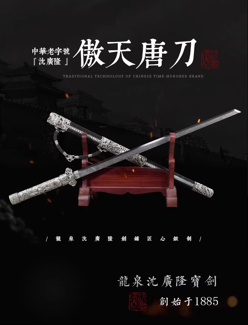 傲天唐刀 汉唐刀剑 龙泉沈广隆宝剑 一体刀剑传统宝剑 未开刃