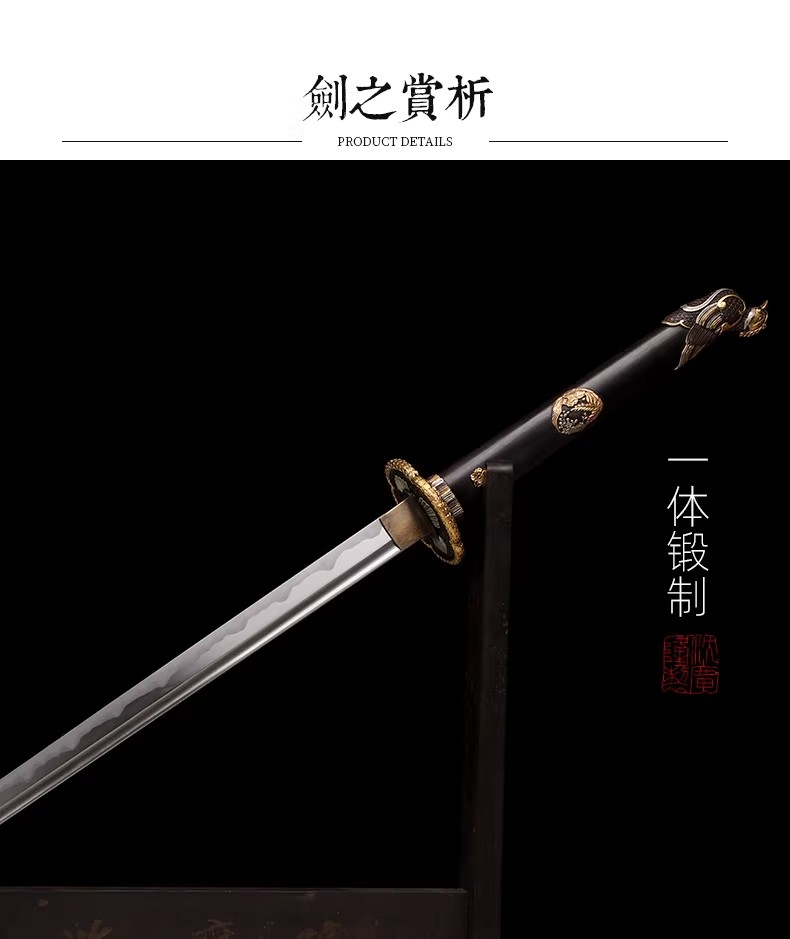 丹凤唐横刀剑 手工传统一体刀剑花纹钢刀剑龙泉沈广隆宝剑 未开刃