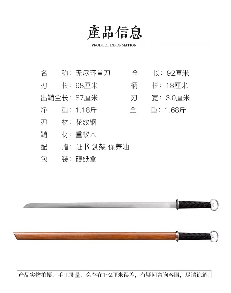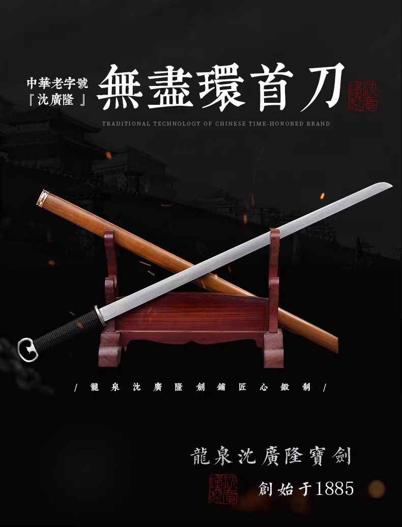 无尽环首刀 花纹钢 唐横刀剑 龙泉沈广隆一体刀剑传统刀剑 未开刃