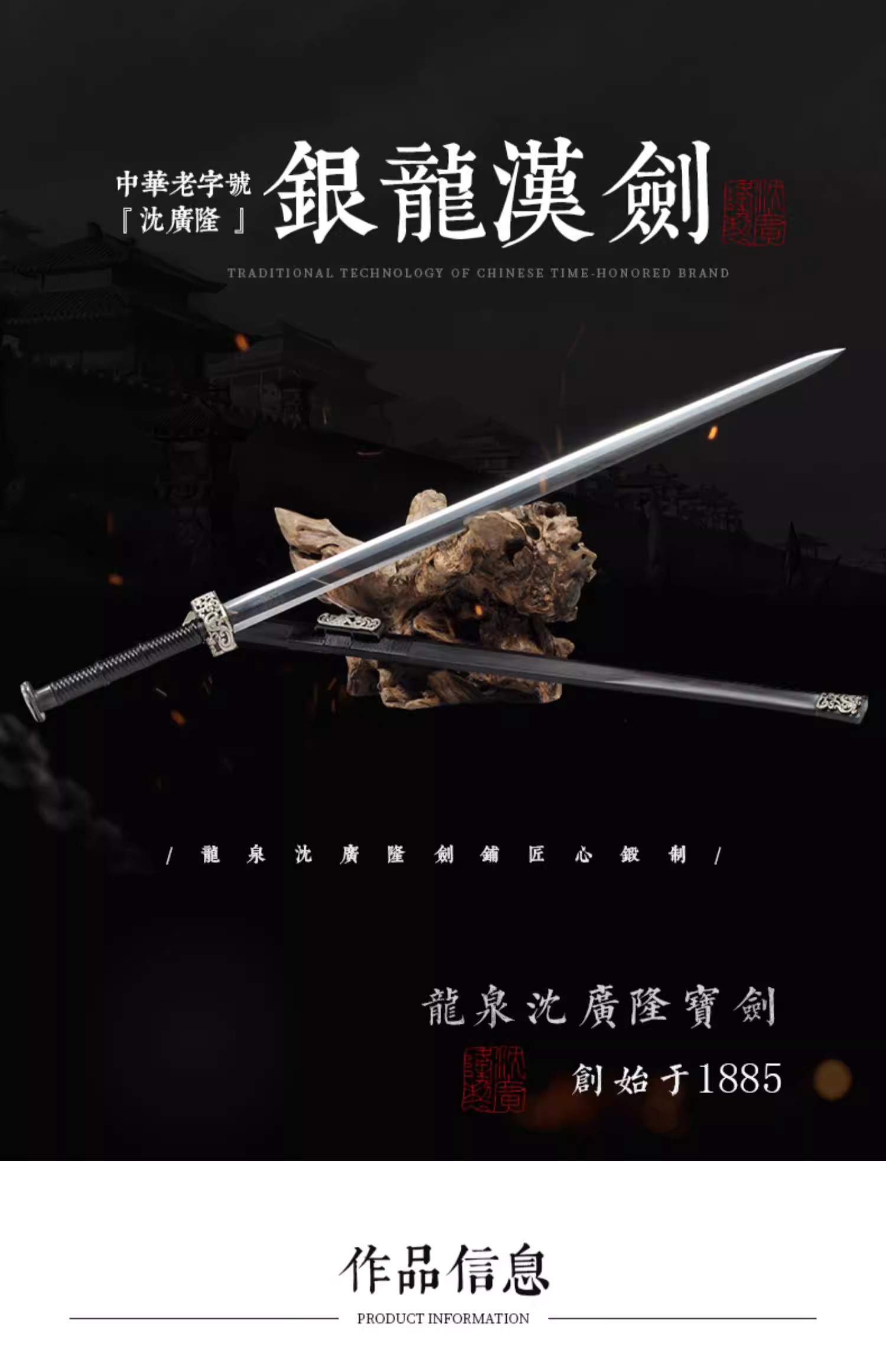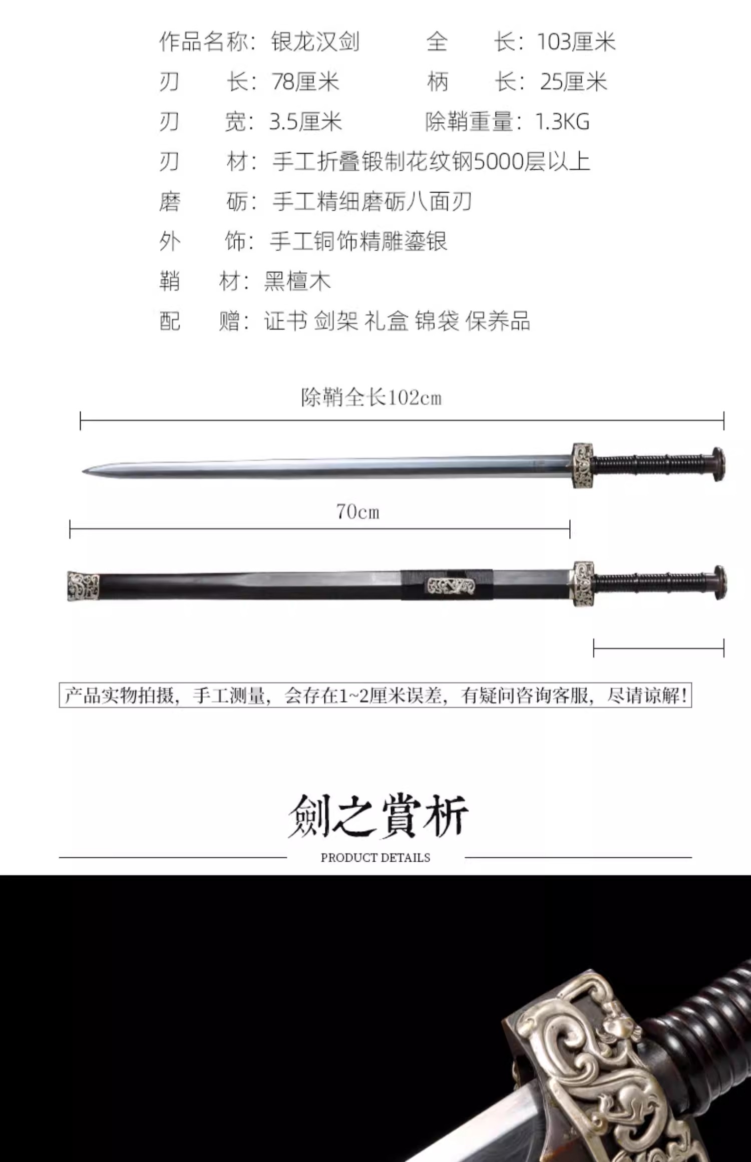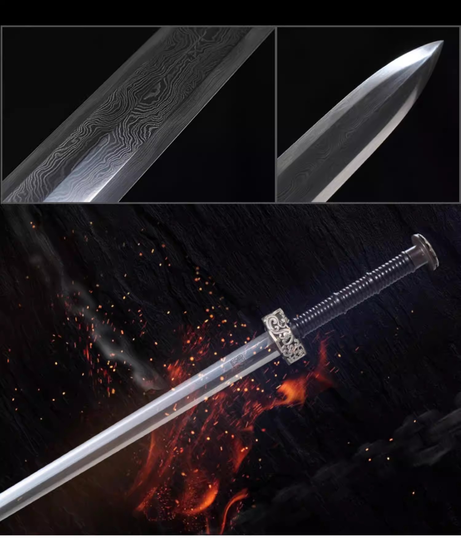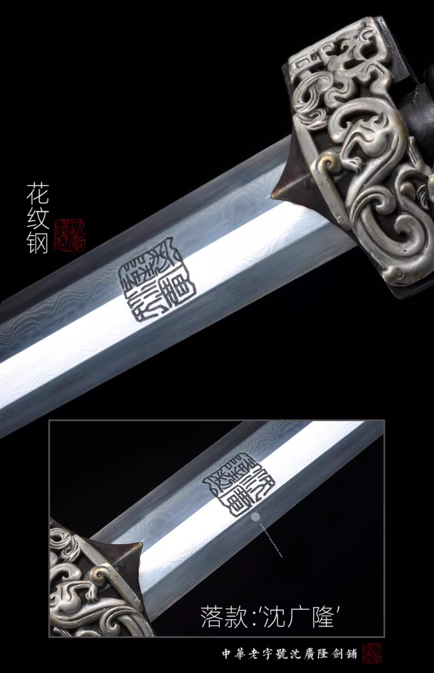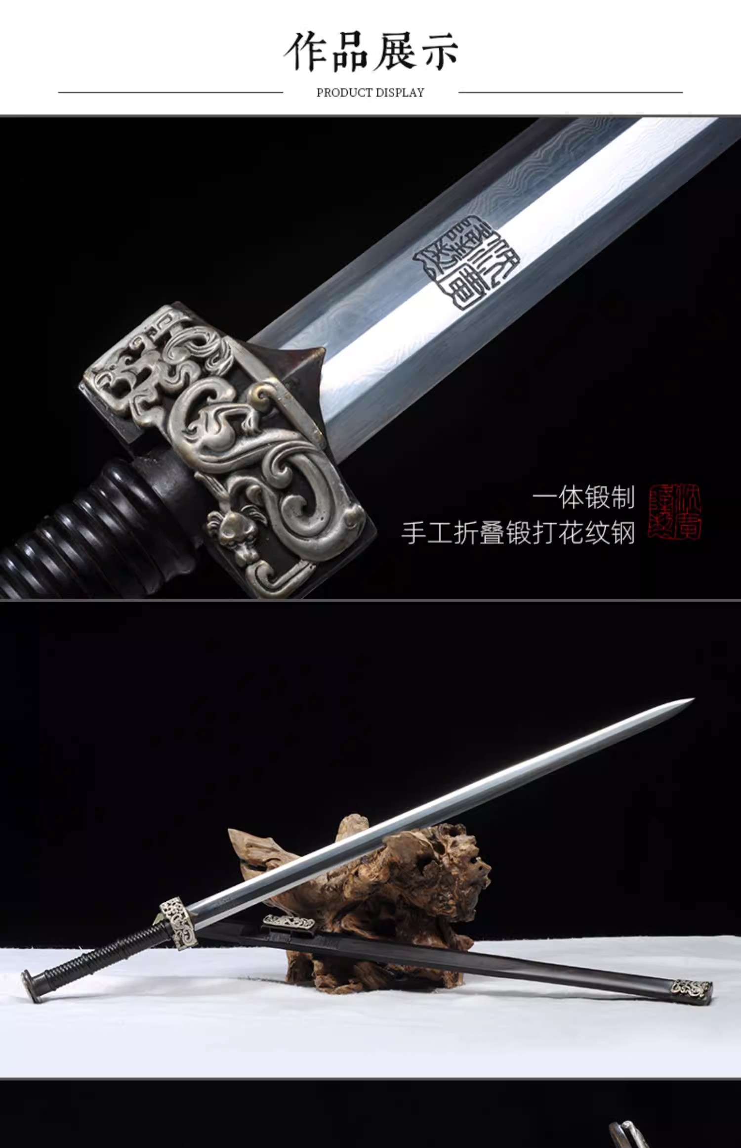 银龙汉剑 八面汉剑唐剑 花纹钢手工一体刀剑 龙泉沈广隆剑 未开刃