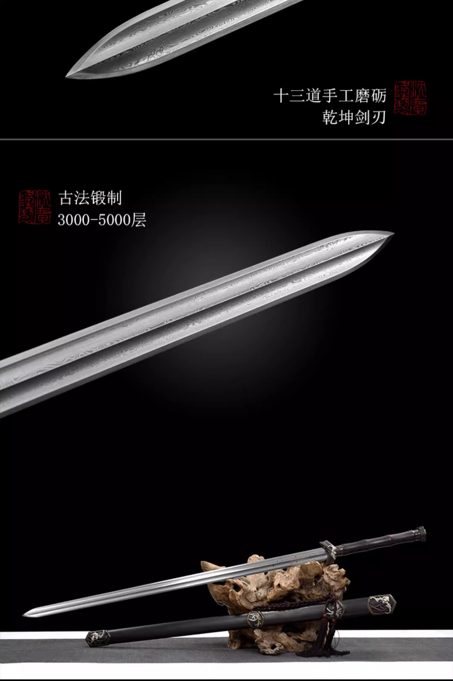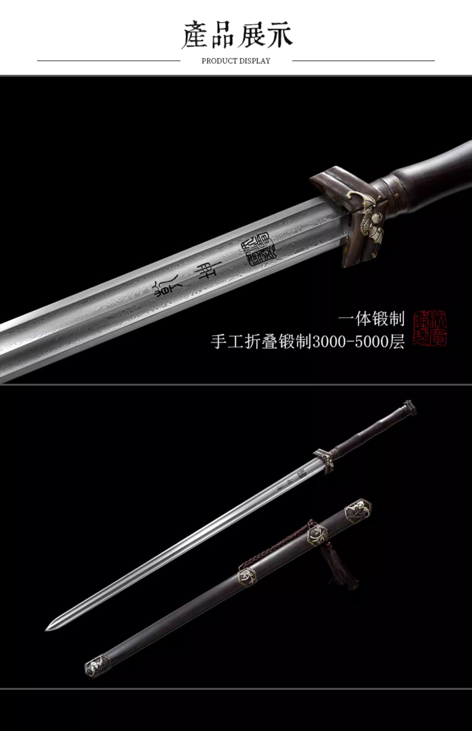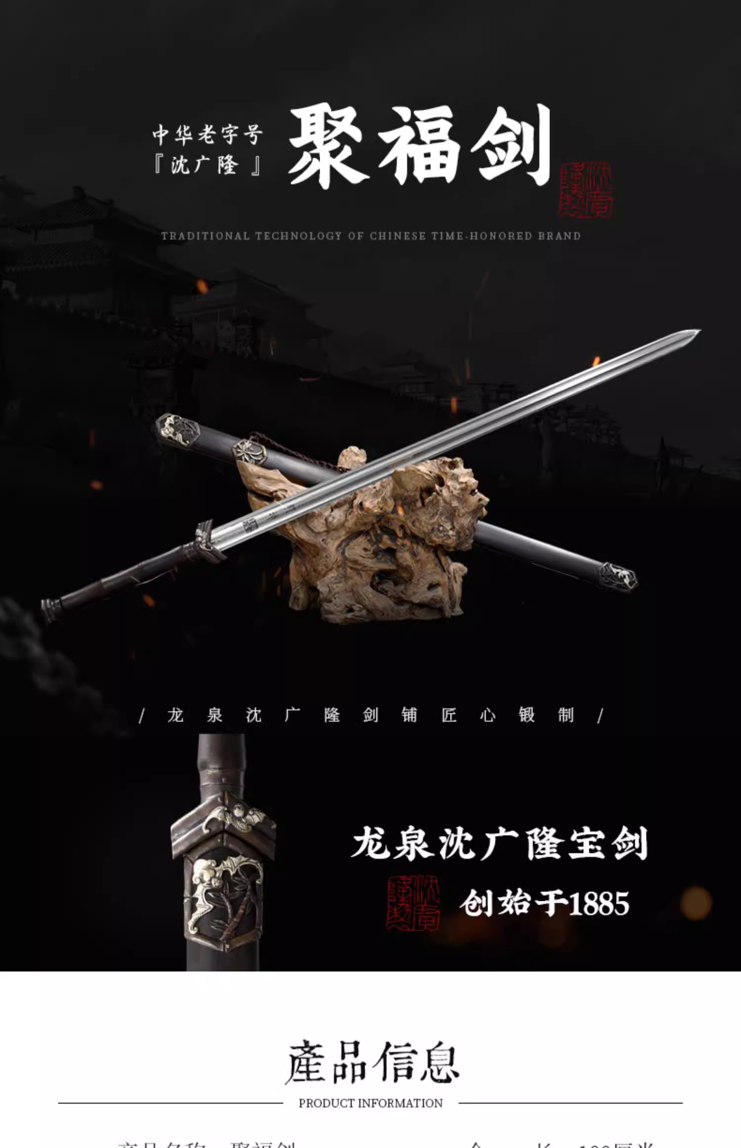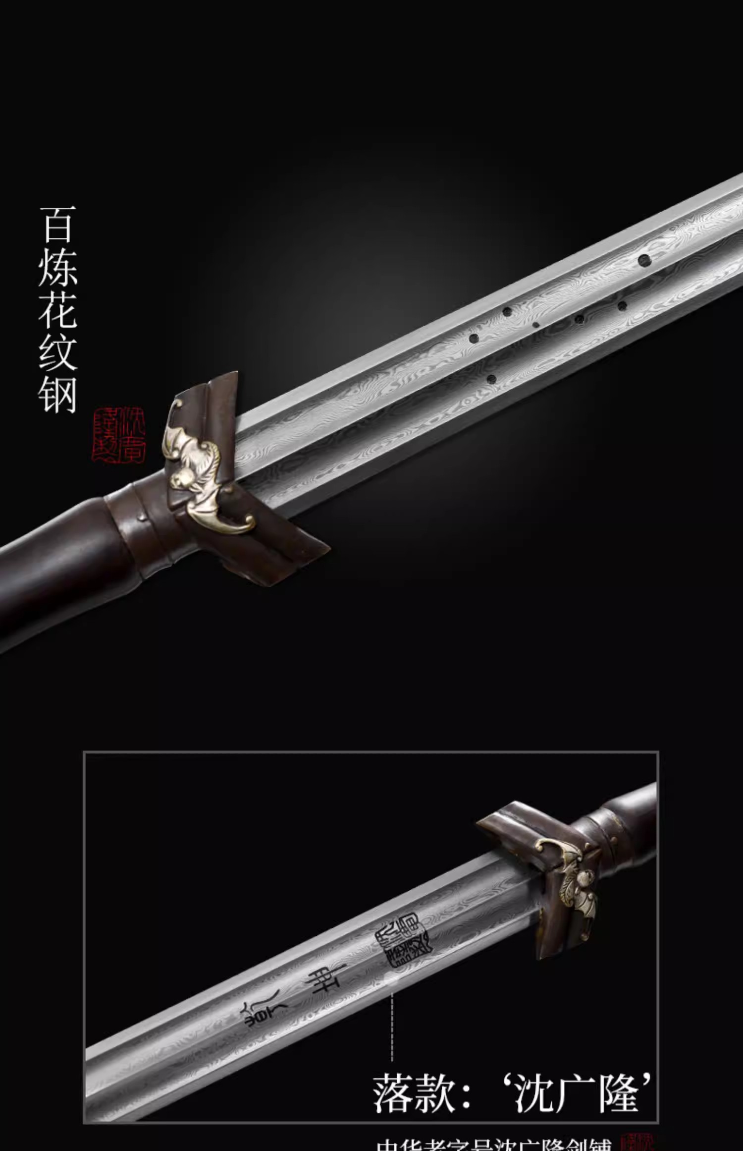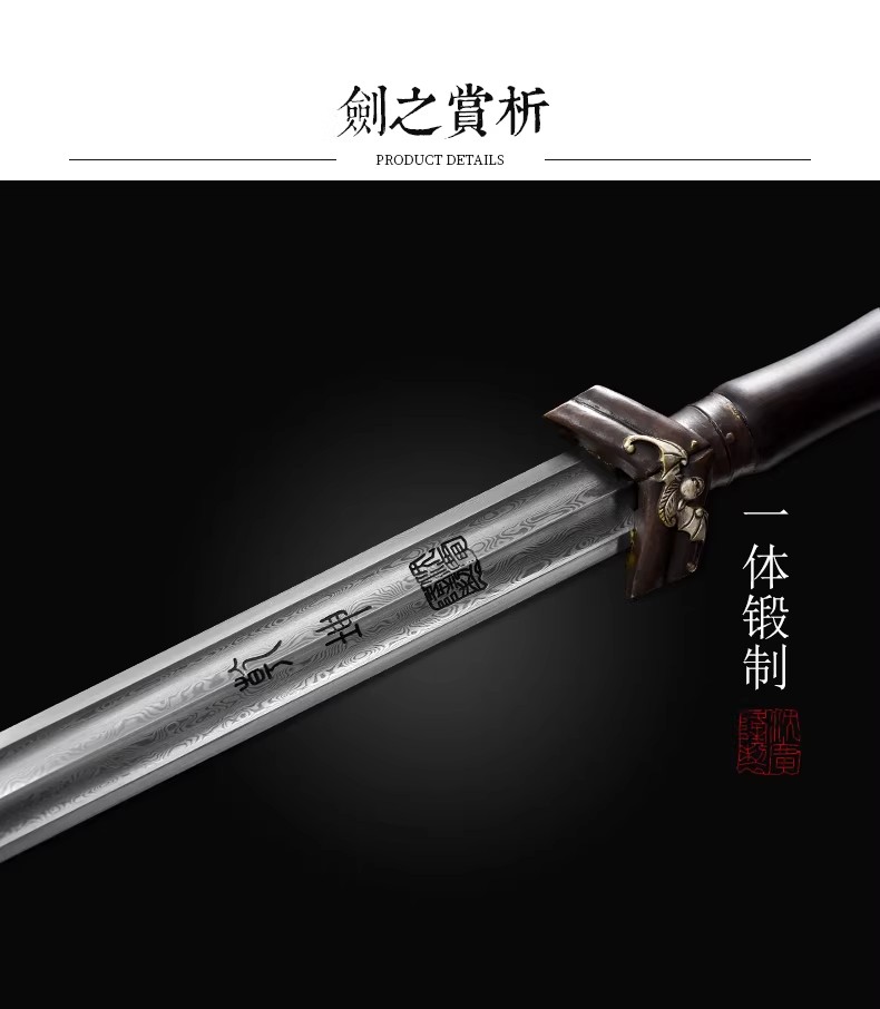 聚福剑 汉剑 唐剑 硬剑一体手工花纹钢沈广隆龙泉传统宝剑 未开刃