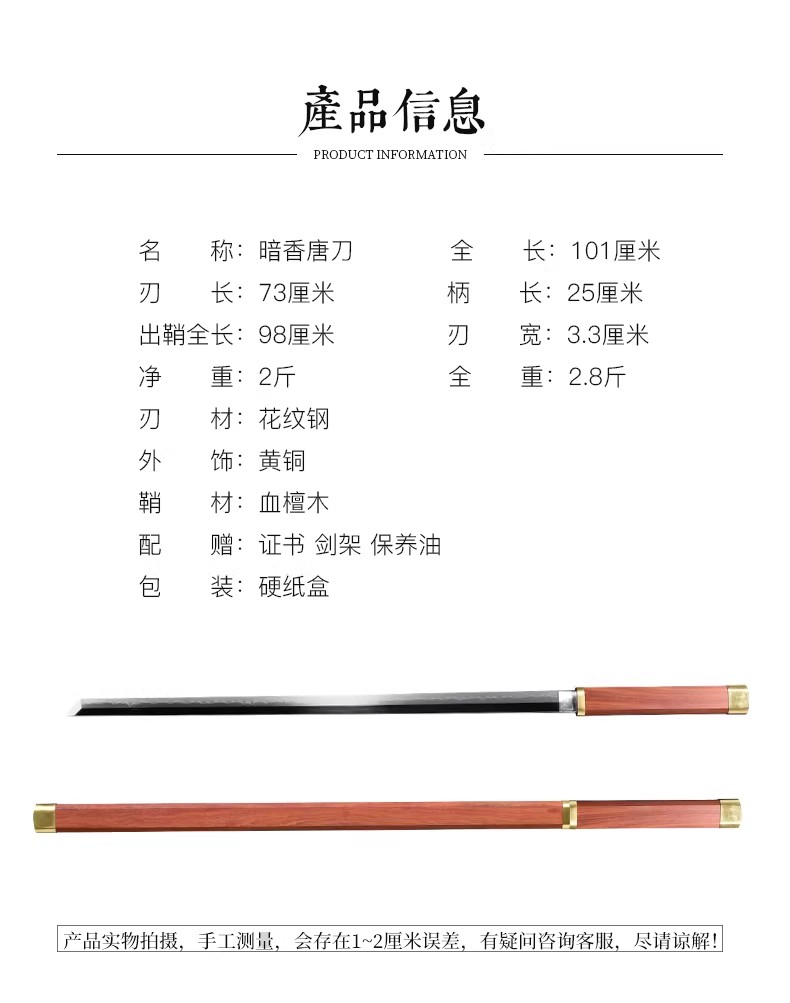 暗香唐刀 汉唐刀剑 花纹钢 龙泉沈广隆宝剑 一体刀剑 未开刃