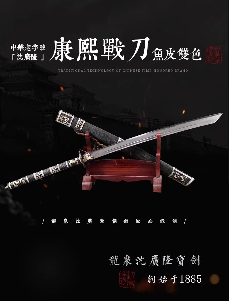 康熙战刀 鱼皮双色 汉唐刀剑龙泉沈广隆一体刀剑传统刀剑 未开刃