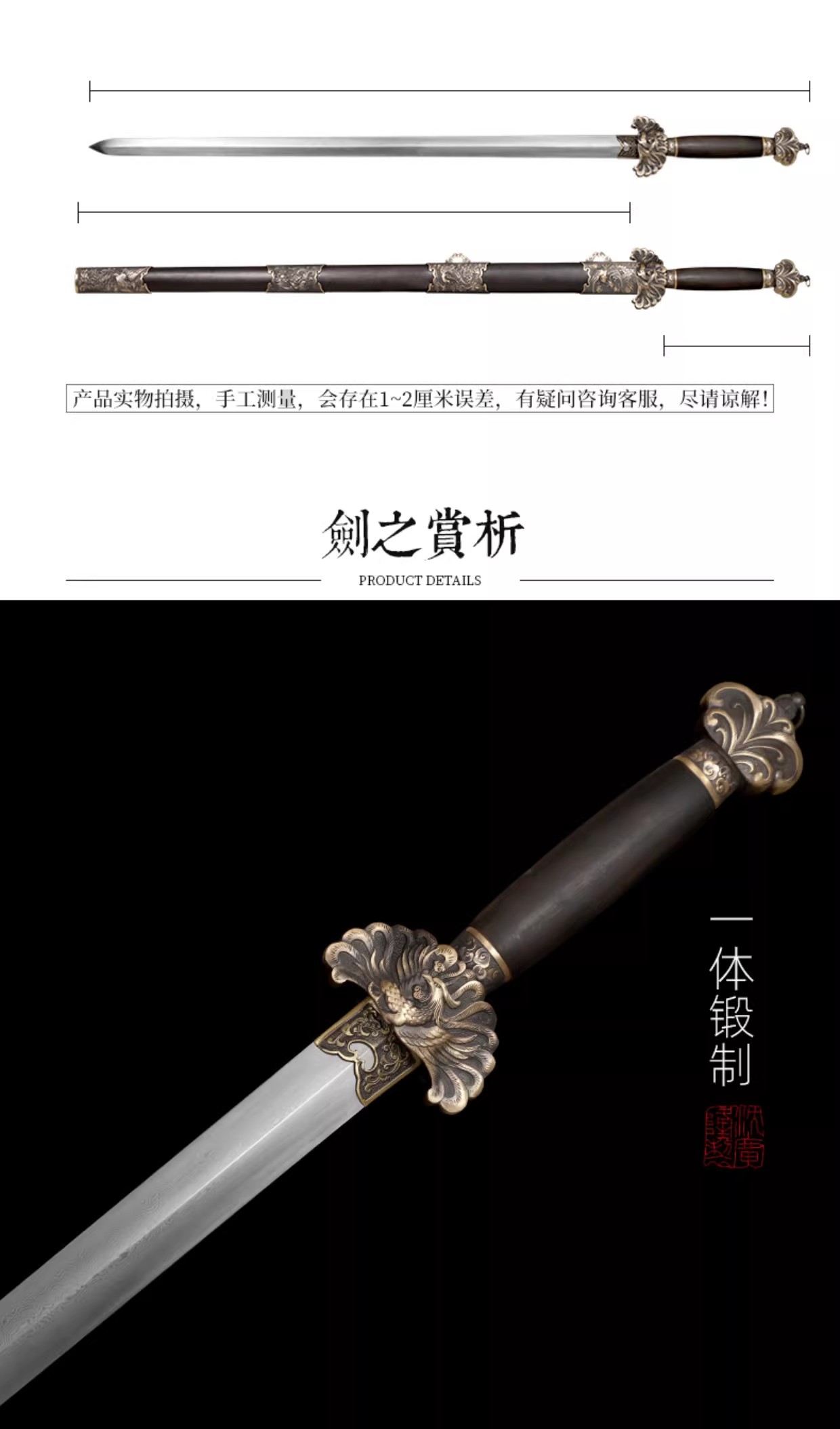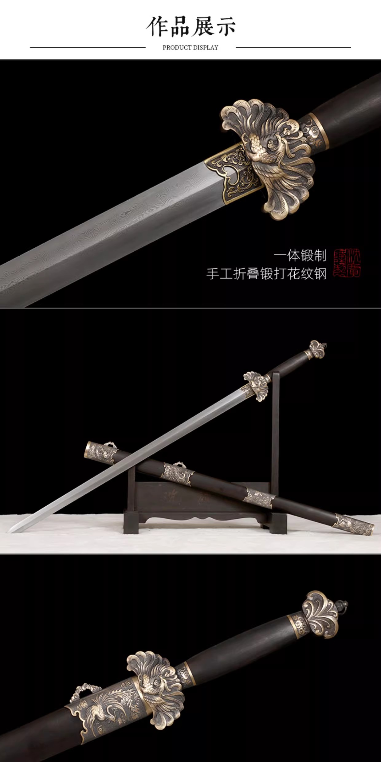 凤至战剑 花纹钢一体锻制 硬剑 龙泉沈广隆剑 传统宝剑 未开刃