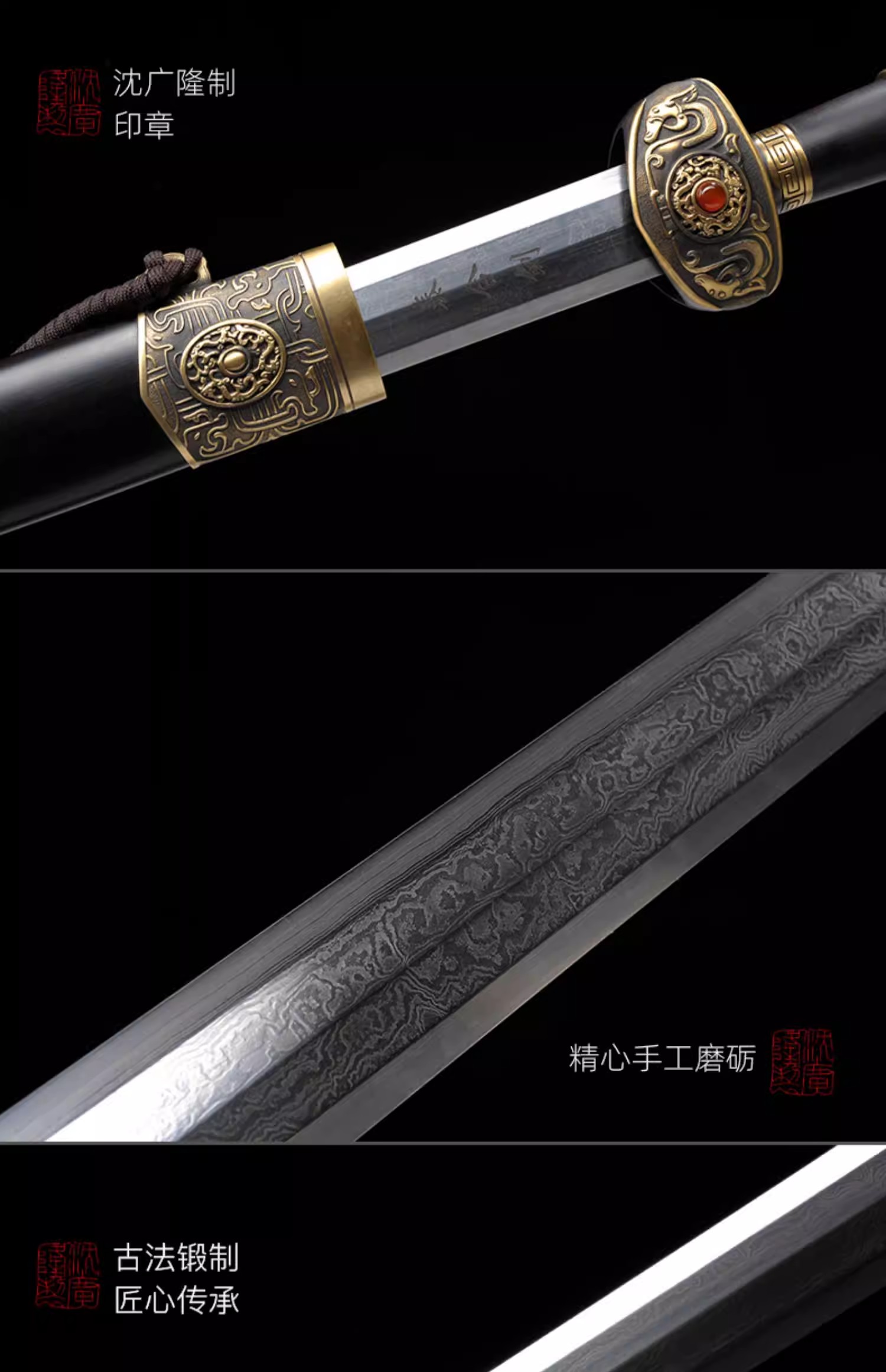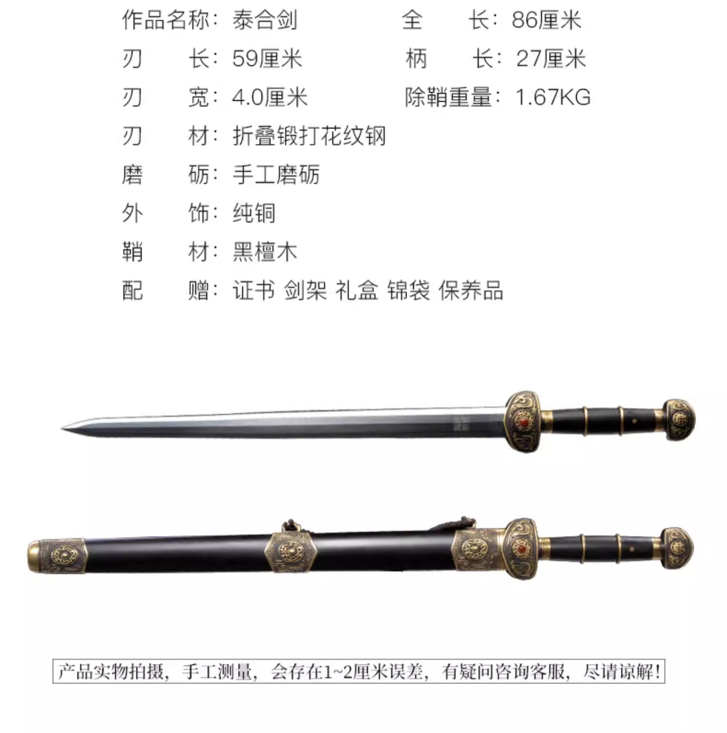 泰合剑 汉剑 八面汉剑 花纹钢剑 手工一体剑 龙泉沈广隆剑 未开刃