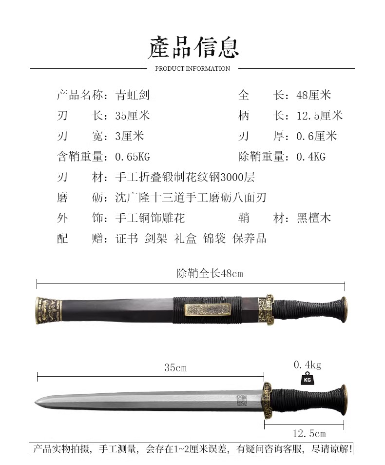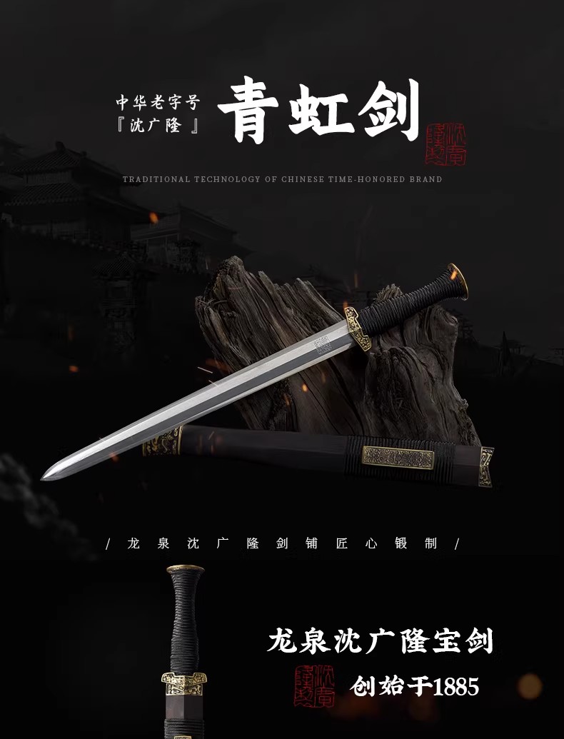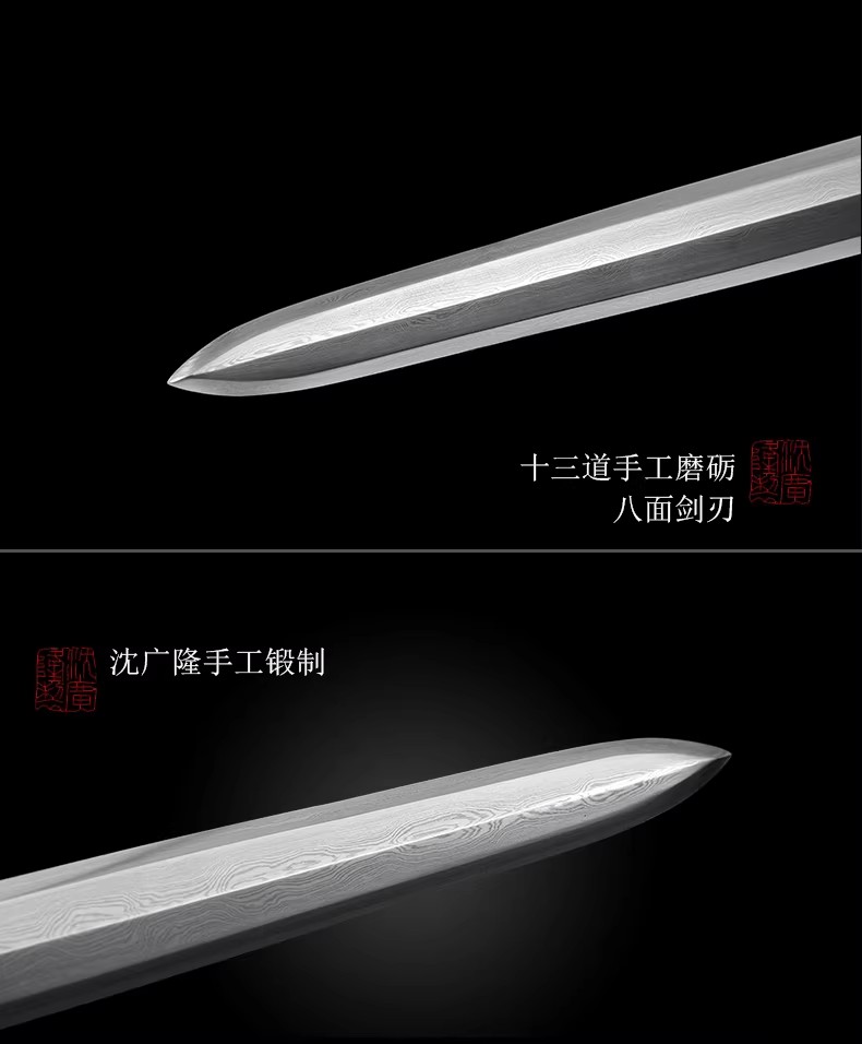 青虹剑 汉剑 唐剑 龙泉短剑刀八面剑花纹钢手工沈广隆宝剑 未开刃