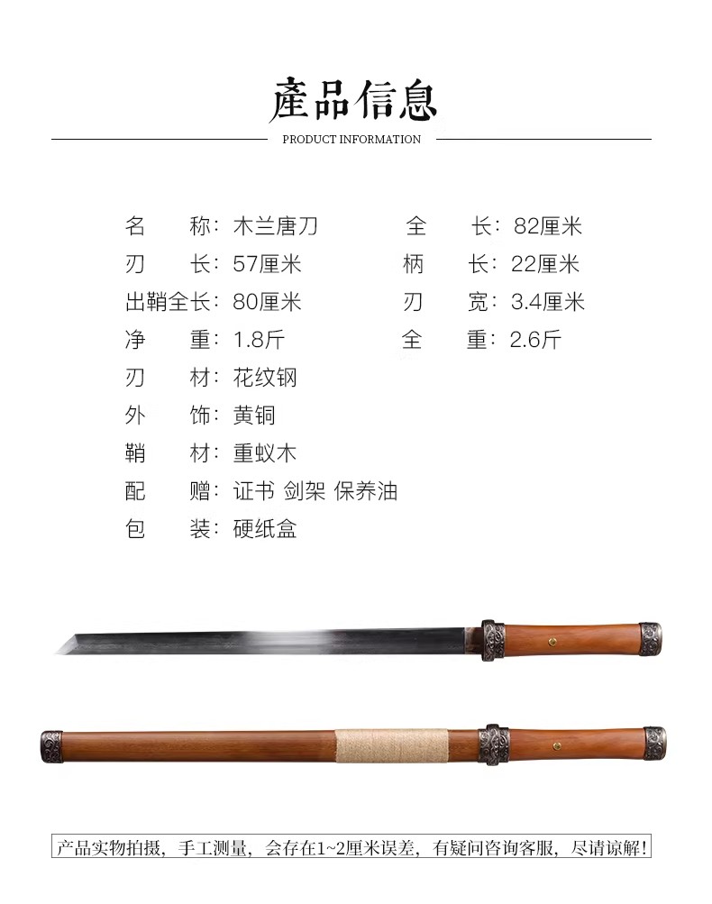木兰唐刀 花纹钢 唐横刀剑 龙泉沈广隆一体刀剑传统刀剑 未开刃