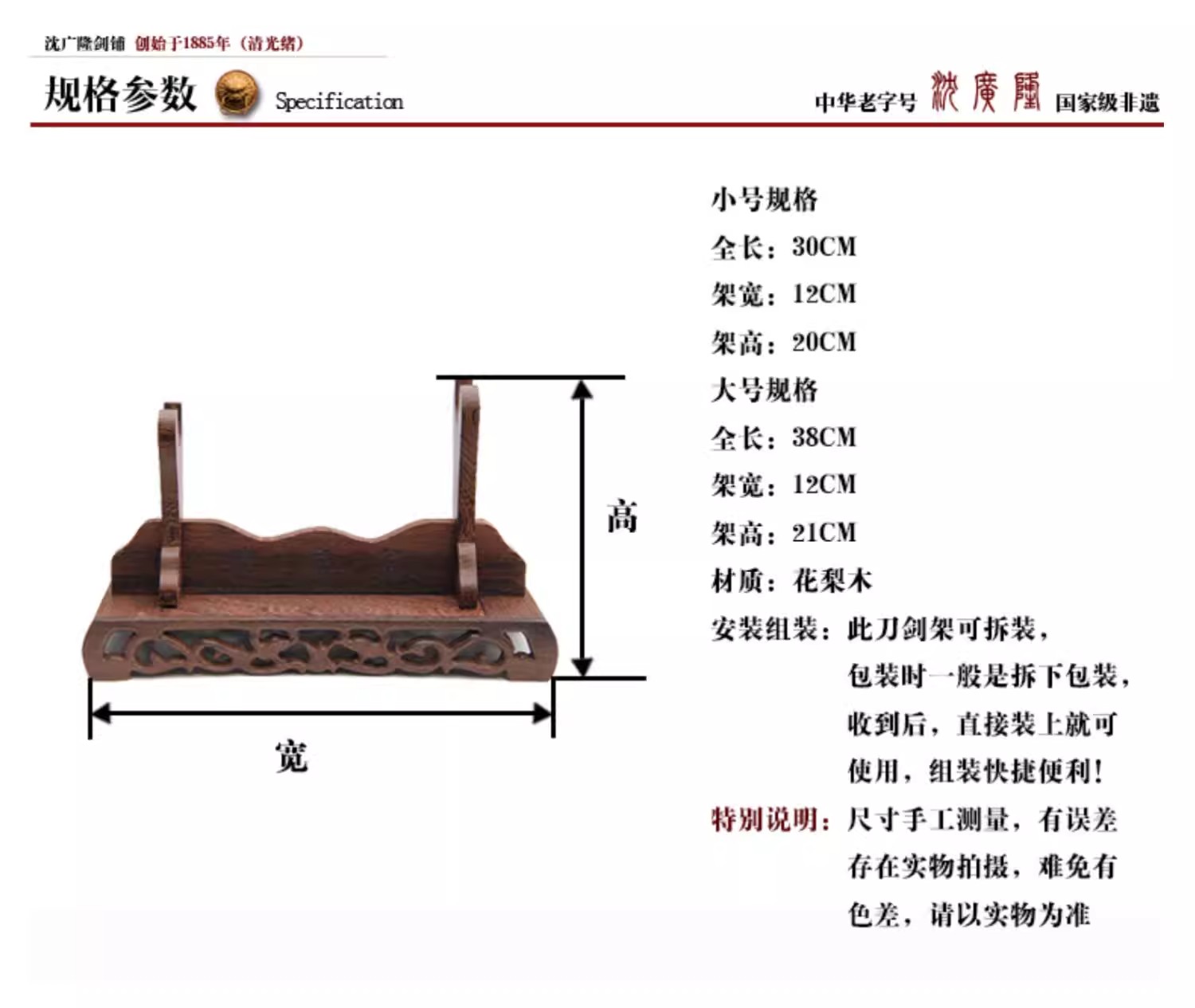 斜横架 花梨木剑架 展示架刀架 剑架 龙泉架子 沈广隆宝剑架