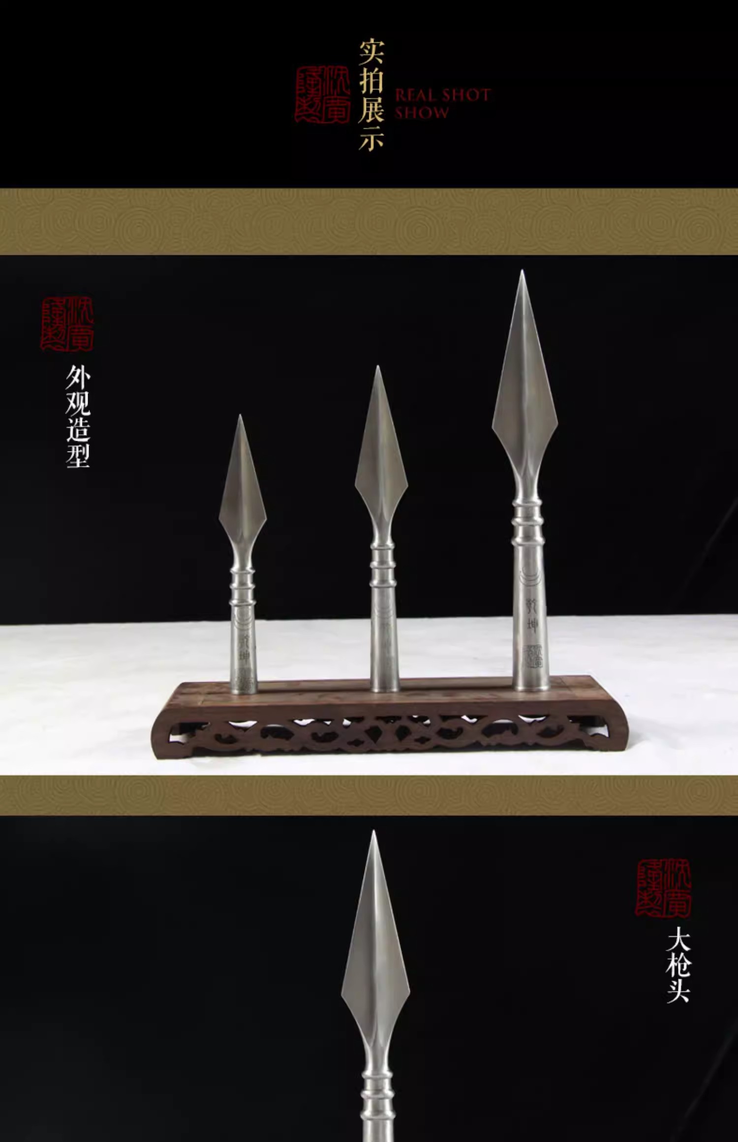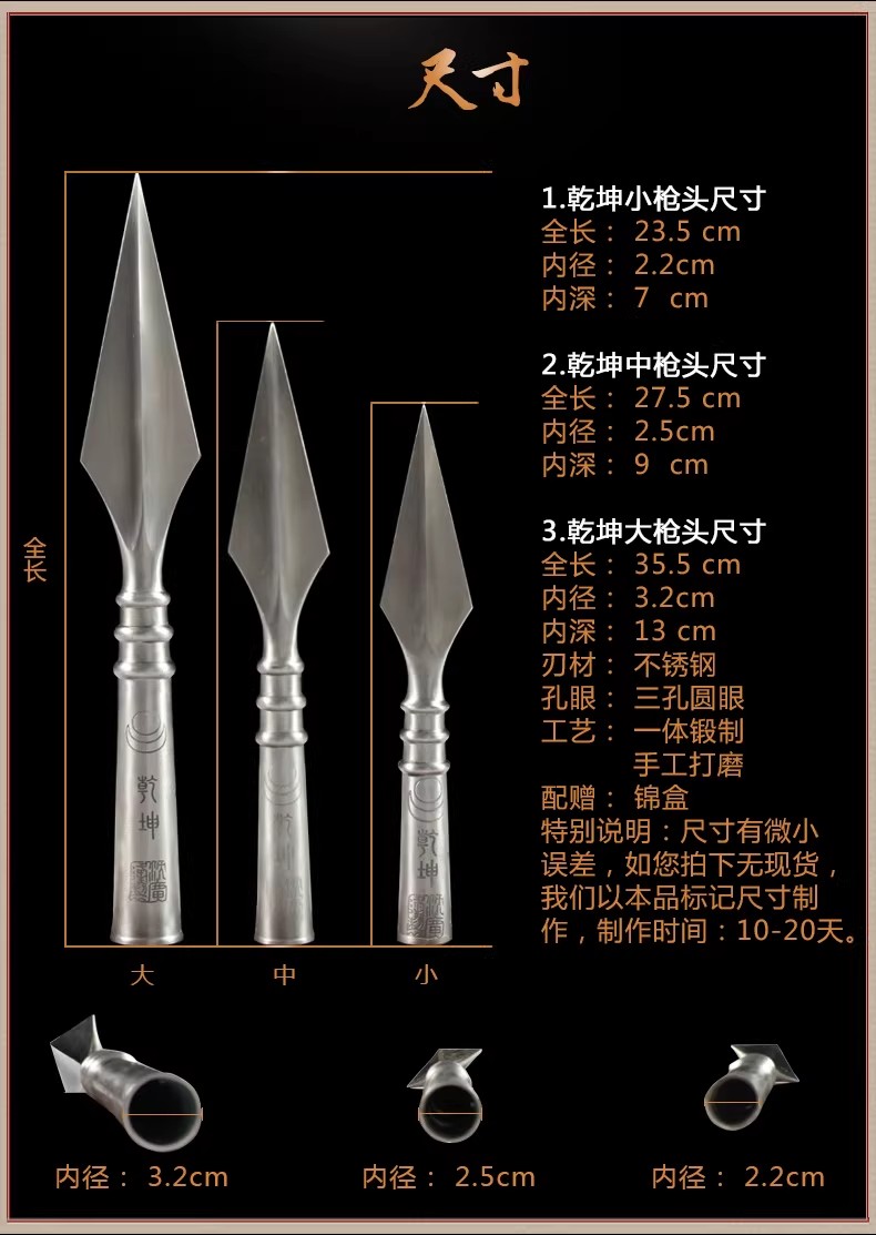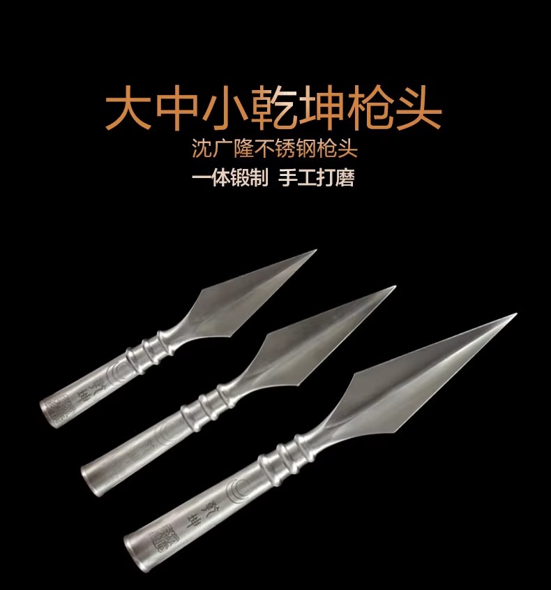乾坤枪头大枪头中枪头 沈广隆剑铺 不锈钢枪头 太极枪头未开刃