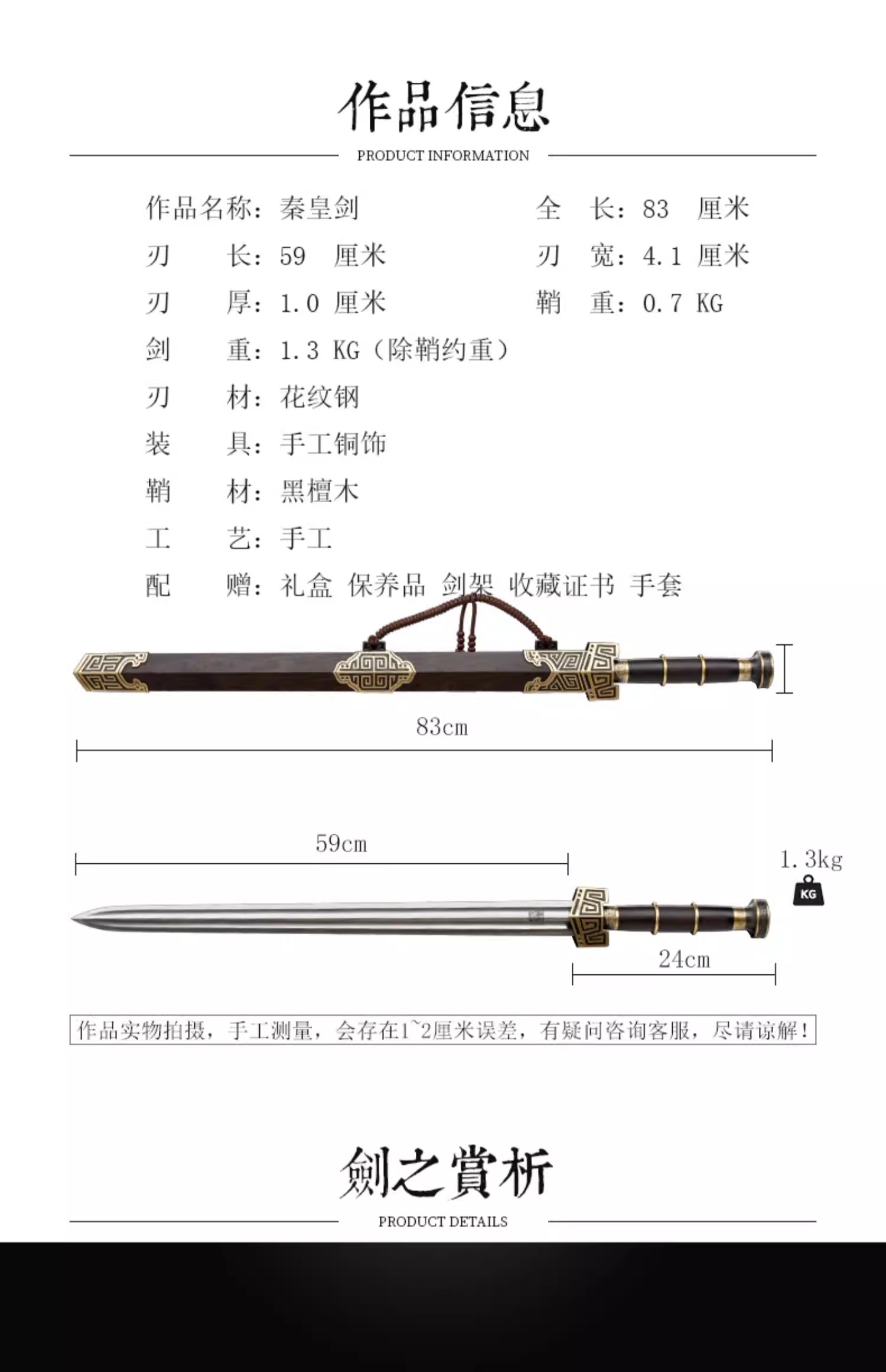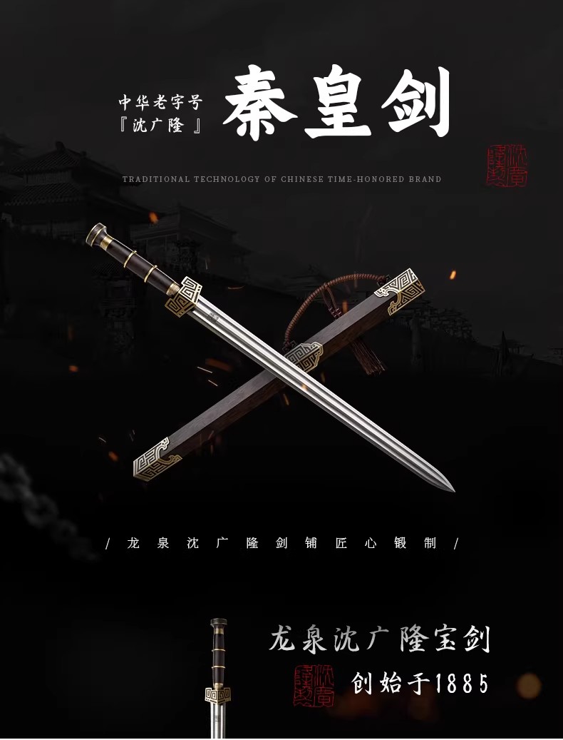 秦皇剑 汉唐横剑冷兵器一体刀剑 传统剑 龙泉沈广隆宝剑 未开刃